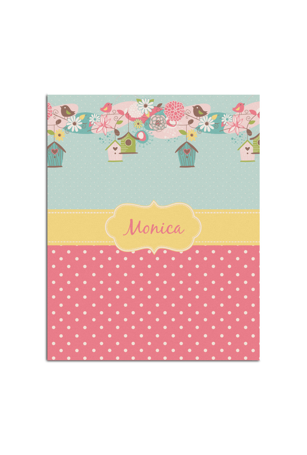 A perfect springtime pattern, whether specifically for Easter, or for just any lovely day. Complete with flowers, and the most adorable birdhouses, this pattern is sure to bring a smile to everyone's face. The design has a classic yellow ribbon, with a decorative label. Add your name for that personal touch to pull the entire design together.