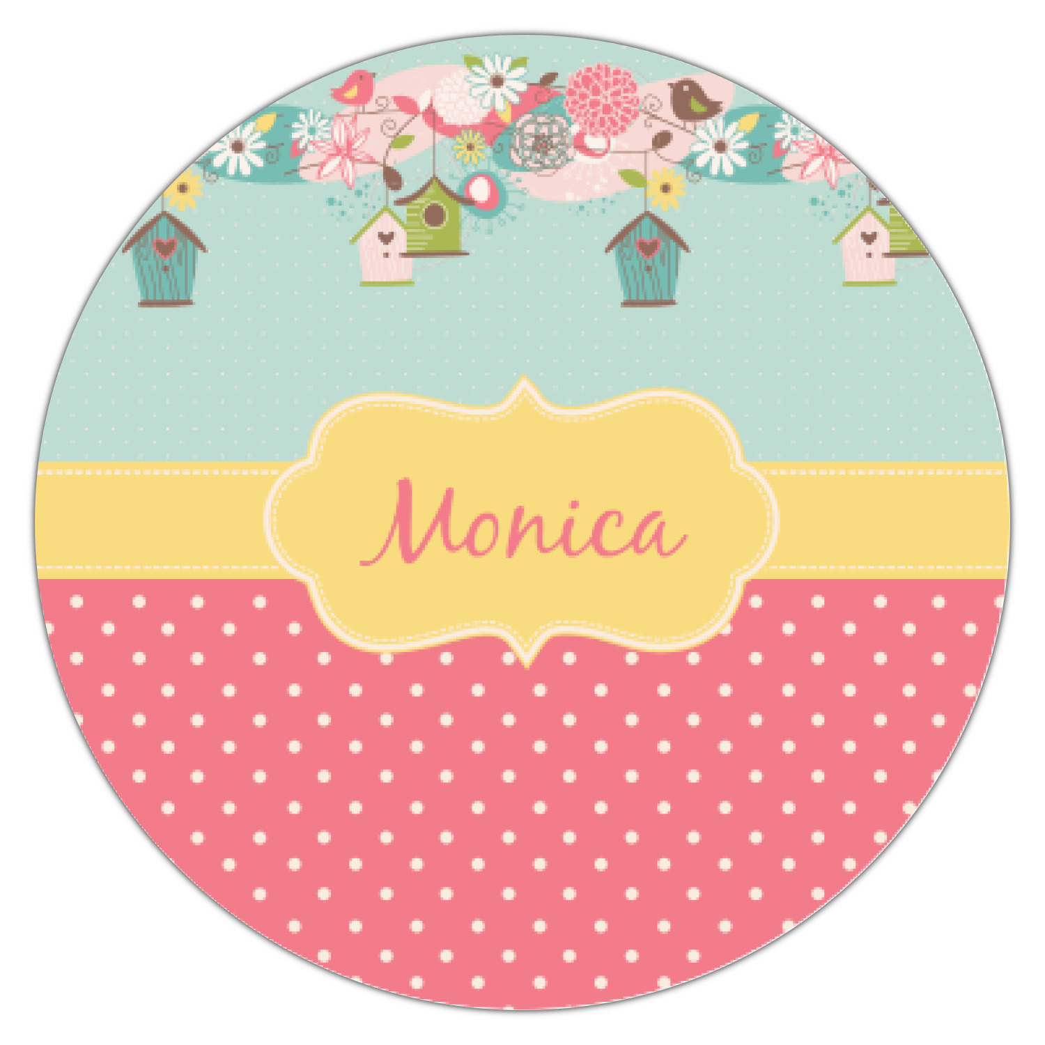 A perfect springtime pattern, whether specifically for Easter, or for just any lovely day. Complete with flowers, and the most adorable birdhouses, this pattern is sure to bring a smile to everyone's face. The design has a classic yellow ribbon, with a decorative label. Add your name for that personal touch to pull the entire design together.