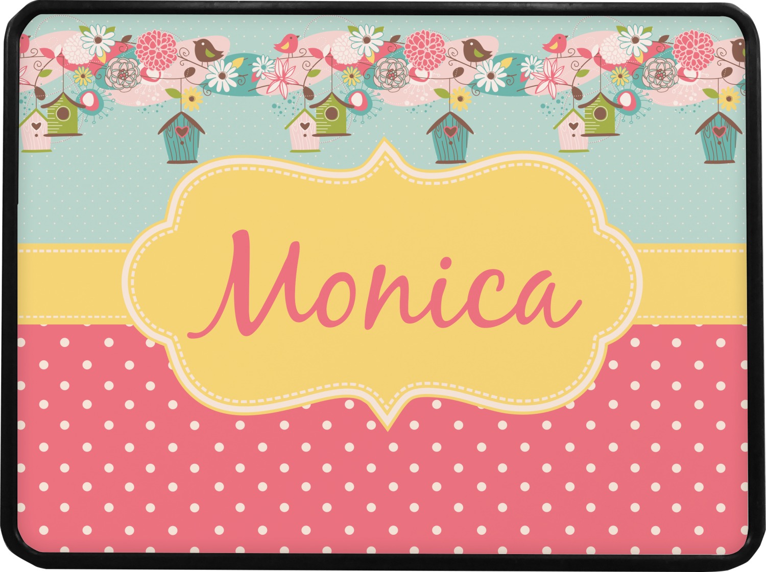 A perfect springtime pattern, whether specifically for Easter, or for just any lovely day. Complete with flowers, and the most adorable birdhouses, this pattern is sure to bring a smile to everyone's face. The design has a classic yellow ribbon, with a decorative label. Add your name for that personal touch to pull the entire design together.
