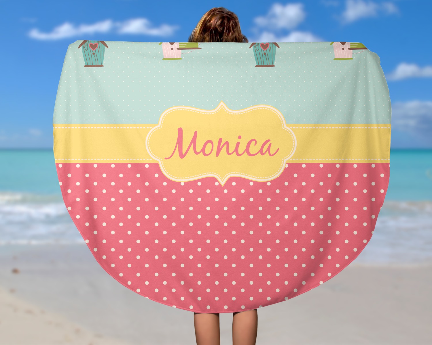 Think out of the box on your next beach, pool, or picnic day in style on your personalized round towel. This must have durable accessory is the perfect size for keeping you, and your possessions out of the sand. Sprawl out in the sun without getting your hands dirty, the unique round design allows for a full range of motion.