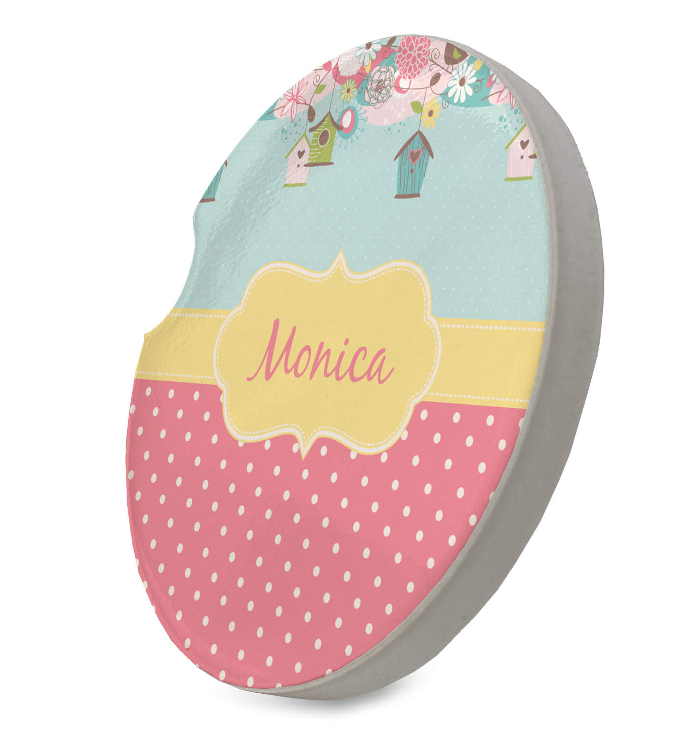 These sandstone coasters are round, robust, and feature a smoothed glossy side to exhibit your customized design. With a 2.5 inch diameter, these stone coasters will fit snugly inside most cup holders. This model also features a semi-circle shaped divot that allows for easy removal, despite the tight fit. You can purchase these car cup holder coasters in a pair, or singularly, depending on your needs.
