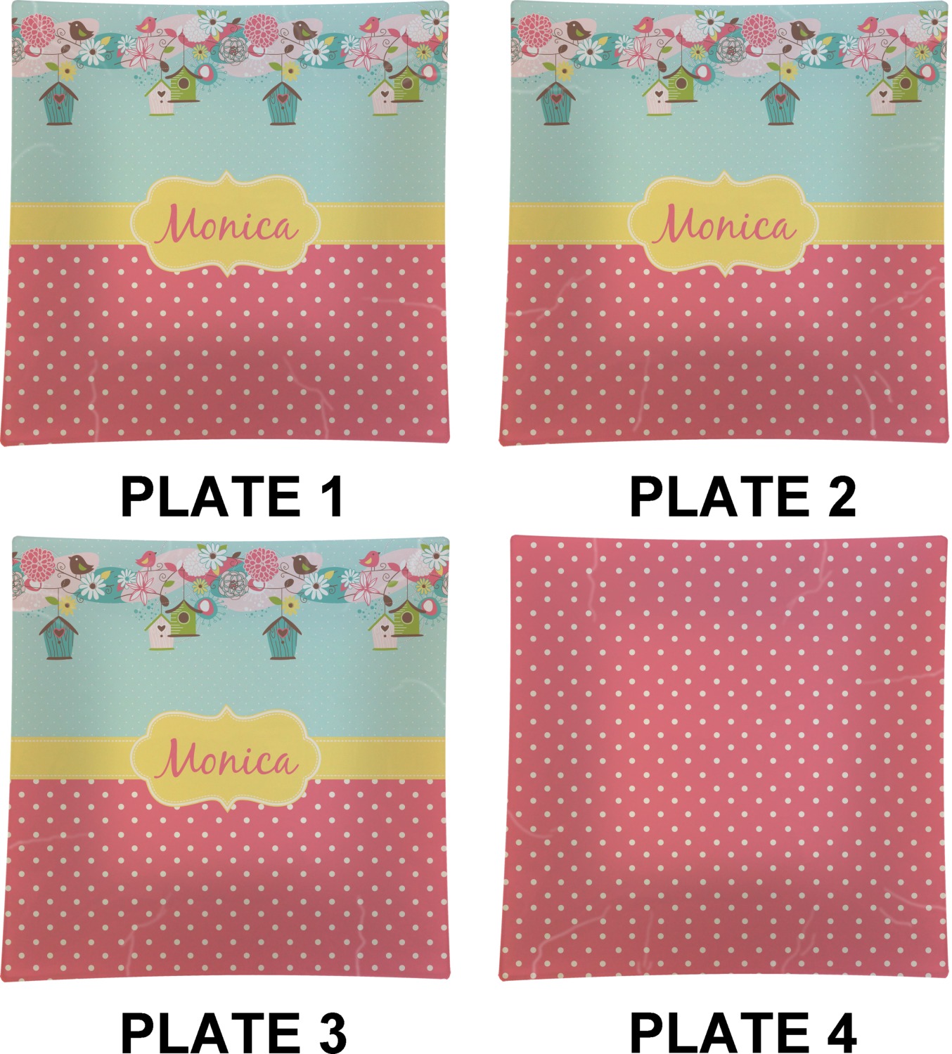 Birdcage Designs for Glass Square Lunch / Dinner Plates 9.5" - Set of 4