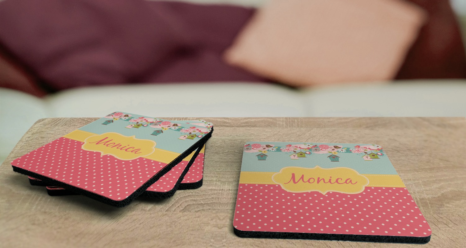 Replace your boring, run-of-the-mill coasters with a set of 4 personalized coasters! When personalized, these coasters will protect your beloved surfaces while adding to your home's decor! Thanks to your coasters bright colors and unique design, your guests will be eager to use them!