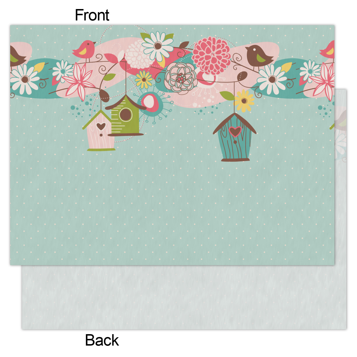 A perfect springtime pattern, whether specifically for Easter, or for just any lovely day. Complete with flowers, and the most adorable birdhouses, this pattern is sure to bring a smile to everyone's face. The design has a classic yellow ribbon, with a decorative label. Add your name for that personal touch to pull the entire design together.