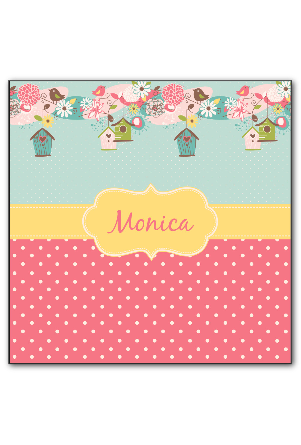 A perfect springtime pattern, whether specifically for Easter, or for just any lovely day. Complete with flowers, and the most adorable birdhouses, this pattern is sure to bring a smile to everyone's face. The design has a classic yellow ribbon, with a decorative label. Add your name for that personal touch to pull the entire design together.
