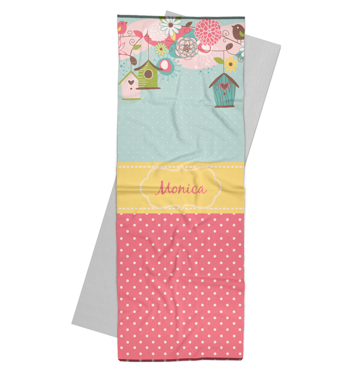 This gorgeous yoga mat towel is printed with your own design on the front with a grey colored back. They are the perfect thing to take with you to a yoga class where you use community mats. No need to worry about someone else's sweat left behind! They also give you a little extra grip on your mat, especially for when you do a hot yoga workout! They measure at approximately 24" W x 68" H. They are the perfect thing for your regular yoga classes or workouts.