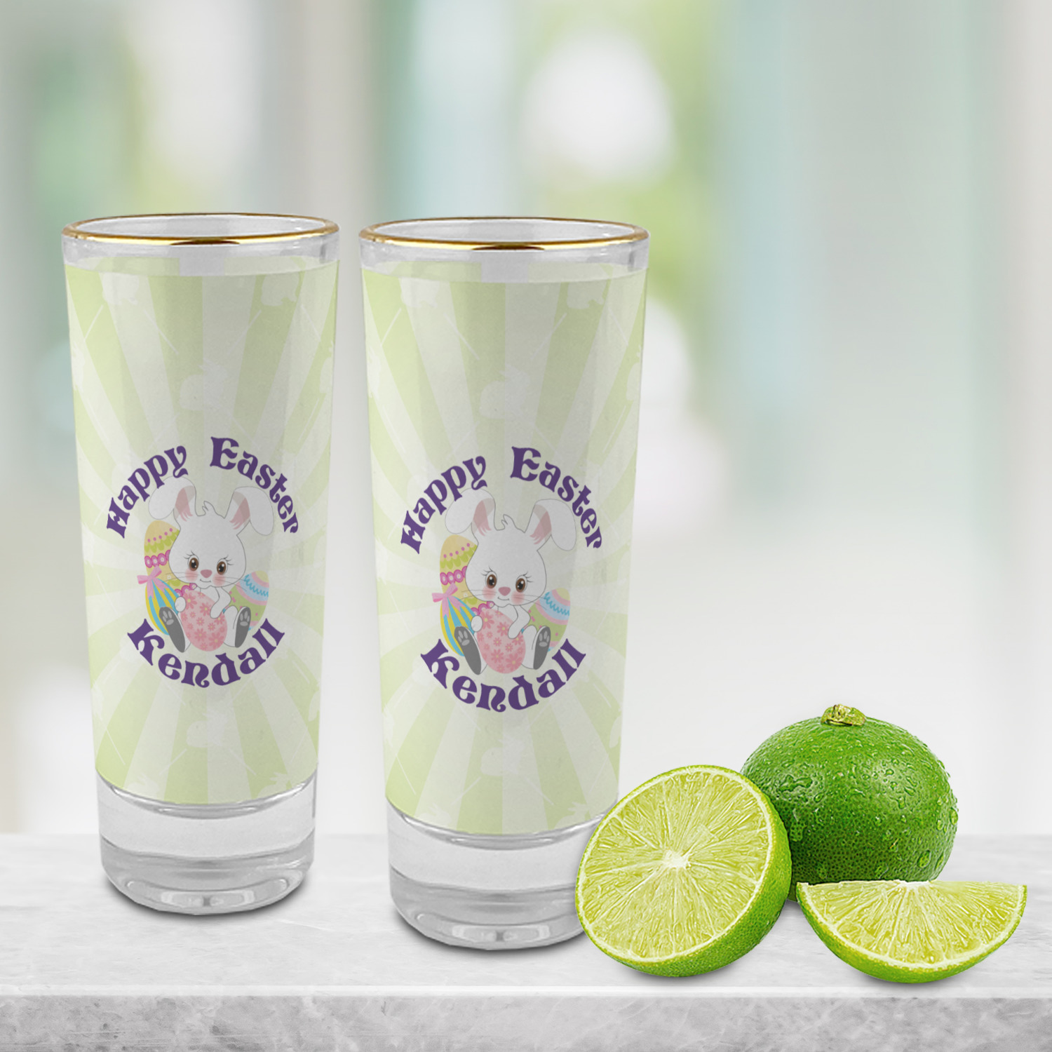 Easter Bunny Designs for 2 oz Shot Glasses - Glass with Gold Rim - Set of 4