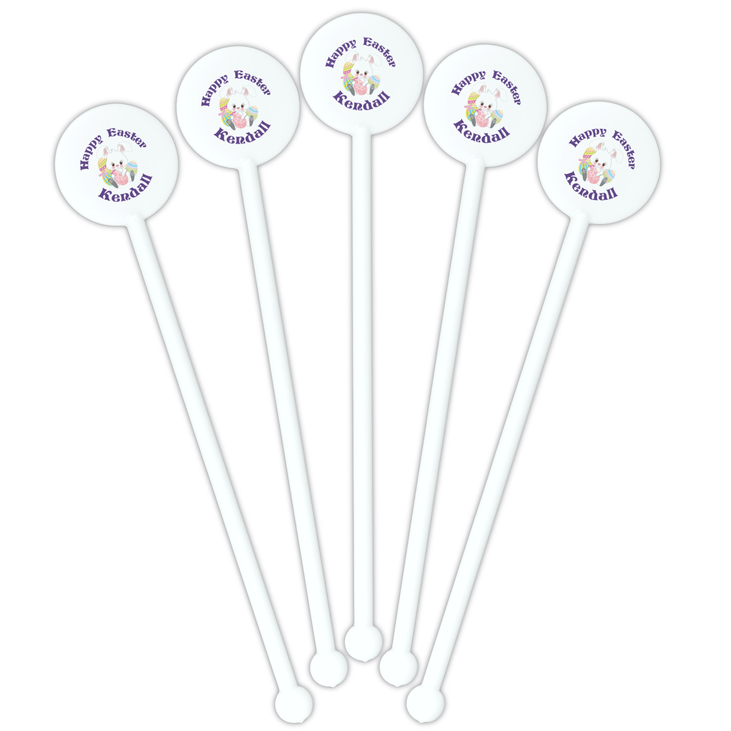 Easter Bunny Designs for 5.5" Round Plastic Stir Sticks - White - Single-Sided