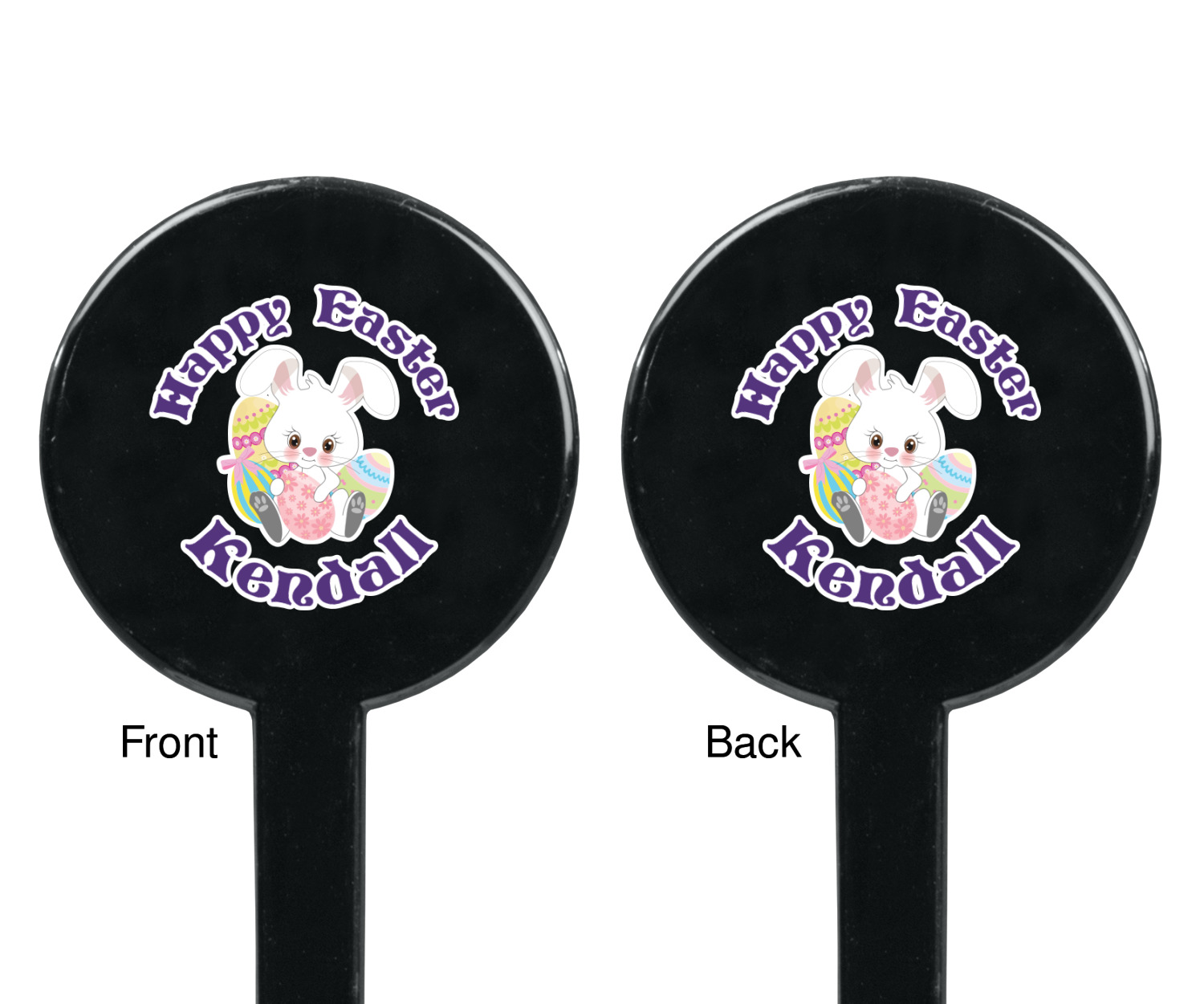 Easter Bunny Designs for 7" Round Plastic Stir Sticks - Black - Double-Sided