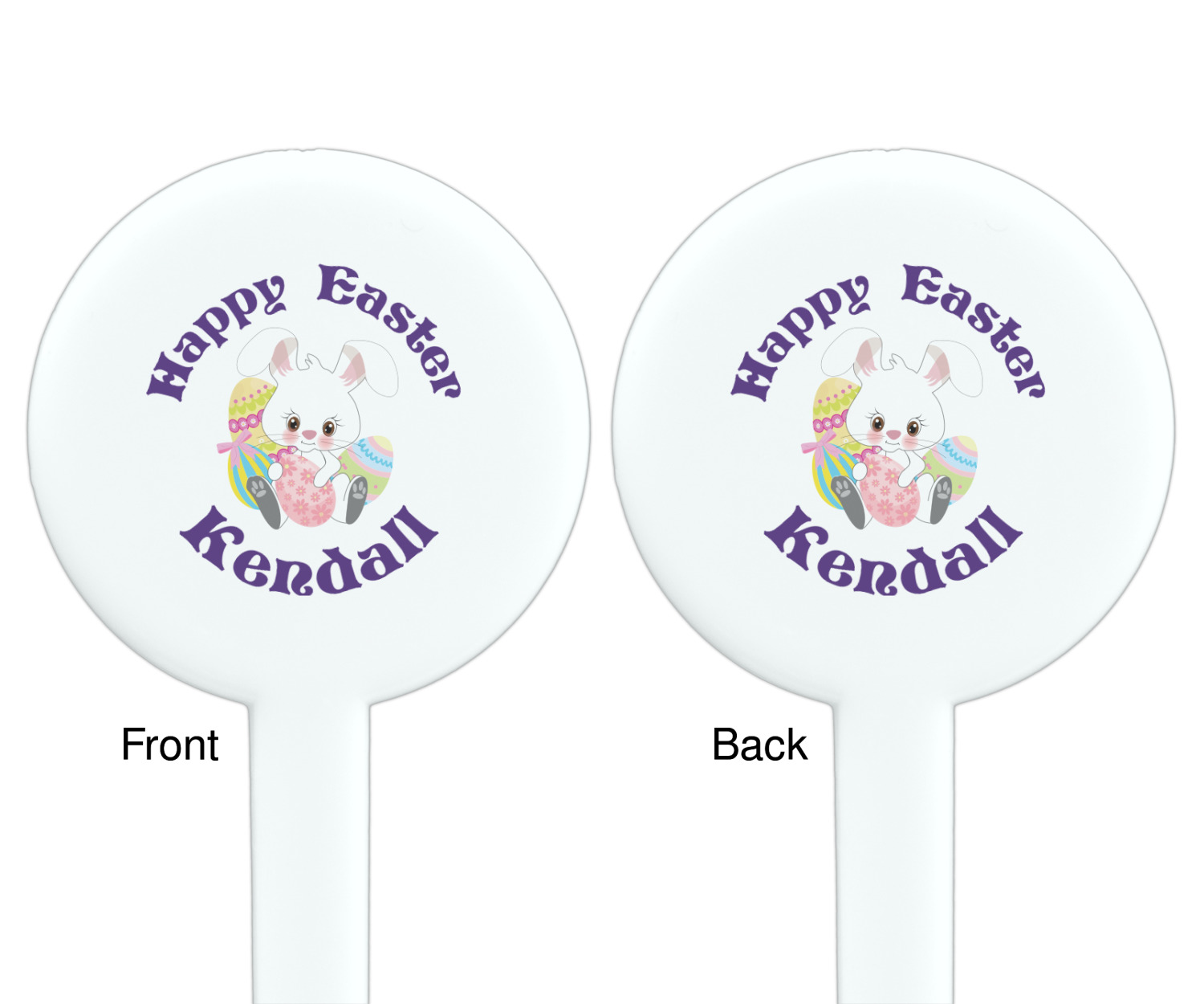 Easter Bunny Designs for 7" Round Plastic Stir Sticks - White - Double-Sided