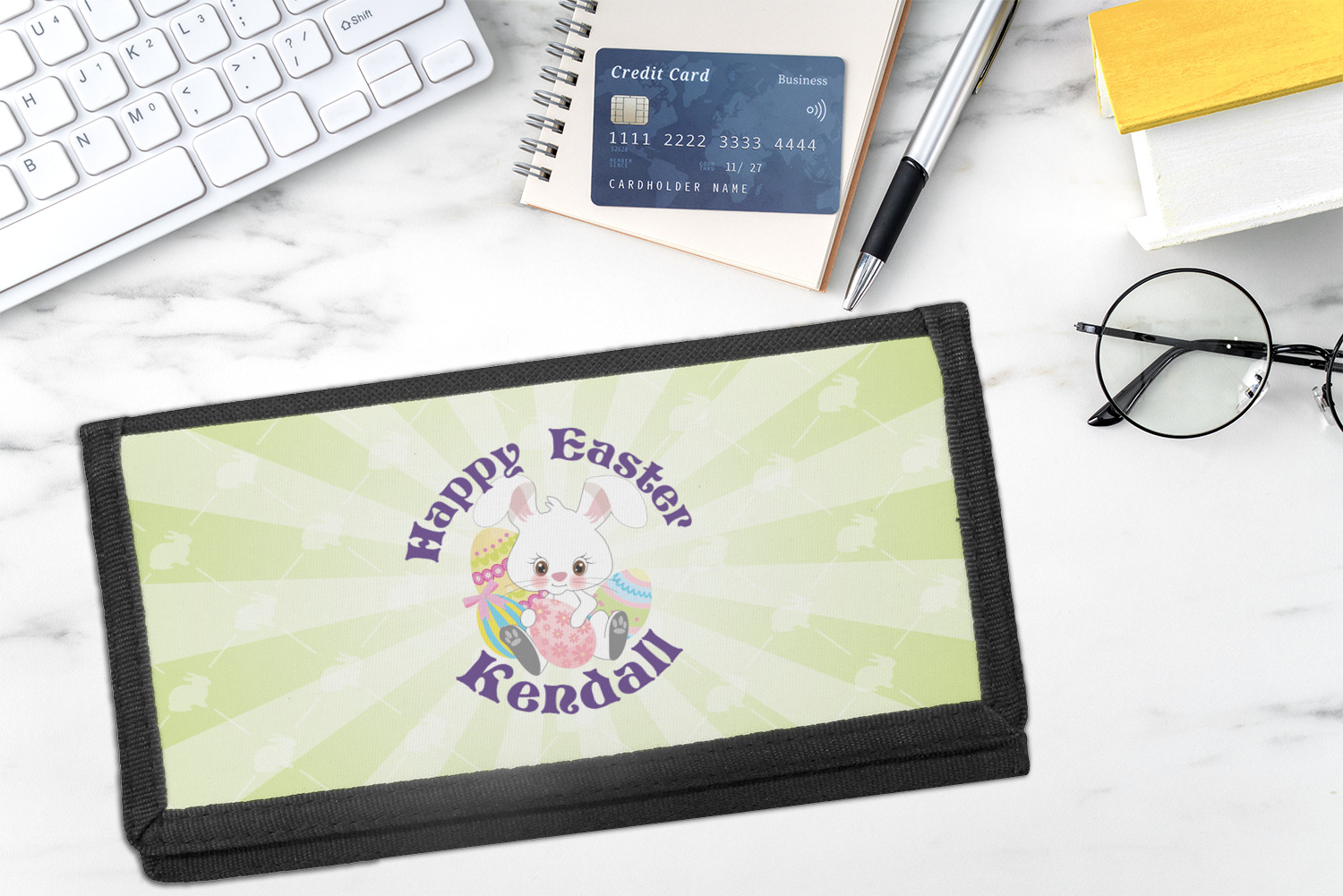 The checkbook cover is made of a durable canvas and the front flap is decorated with a vibrant design of your choosing. With 4 slots for credit cards or IDs, and 2 compartments for your checkbook register, cash, receipts, business cards, and more; this checkbook cover could easily double as a wallet.