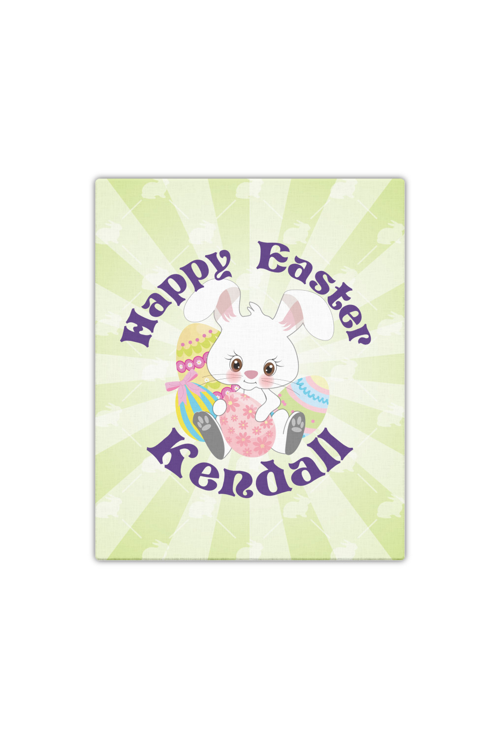 This Easter Bunny design is the prefect example of layered design to create a gorgeous look. We started with a simple Easter bunnies pattern and made it tone on tone. Then we layered it with a our starburst design to create that heroic look. We then used our adorable Easter Bunny with eggs as our hero. We topped off the design with our newest curved text above and below the Easter Bunny.