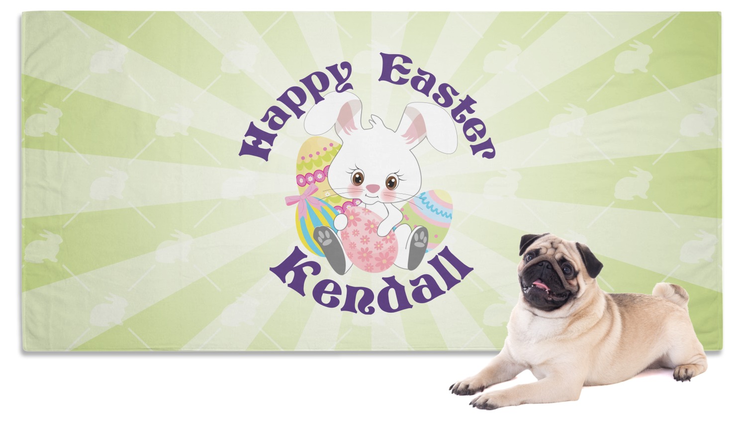 Our custom towels are crafted from a special blend of polyester and polyamide, which contributes to its lightweight, yet thoroughly absorbent nature. We craft it as such to guarantee efficiency as a convenient product; its lightweight nature makes it easy to roll up and carry along, yet it is still able to dry off even the wettest, muddiest pet. It measures at 60" x 30" and is sizable enough to dry off even the largest of pets. With our towel's gentle, soft-to-the-touch material, your pet will be sure to anticipate its warm, dry embrace. We print your personalized design on the front of the towel, while the back is white.