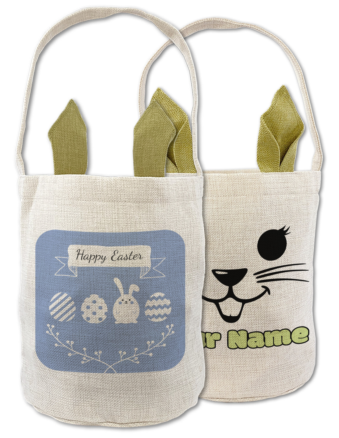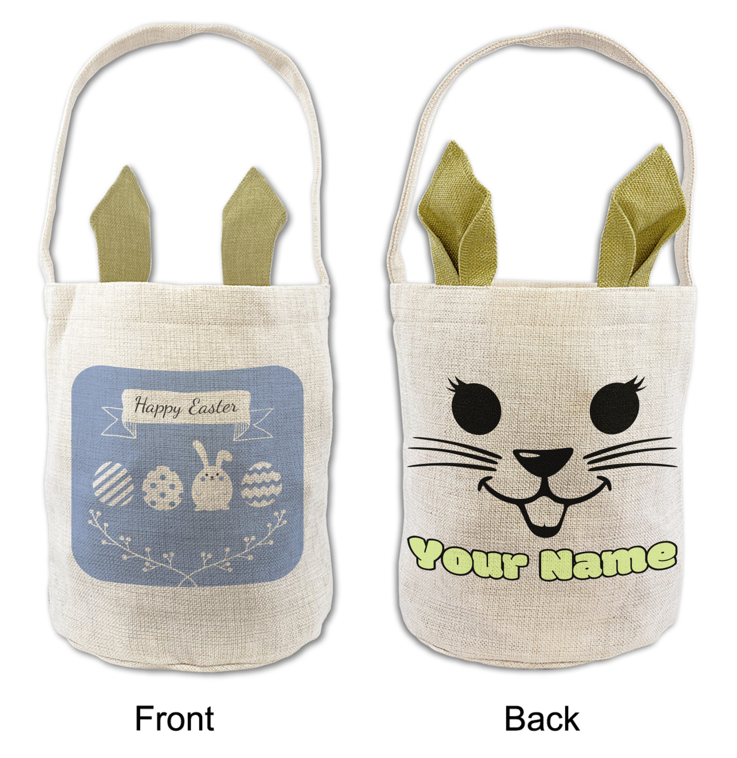 Our baskets comes with two cute bunny ears and customizable bunny faces with your name easily added to the design. You also have the option of adding another image or photo to the other side of the basket for even more color and design options.