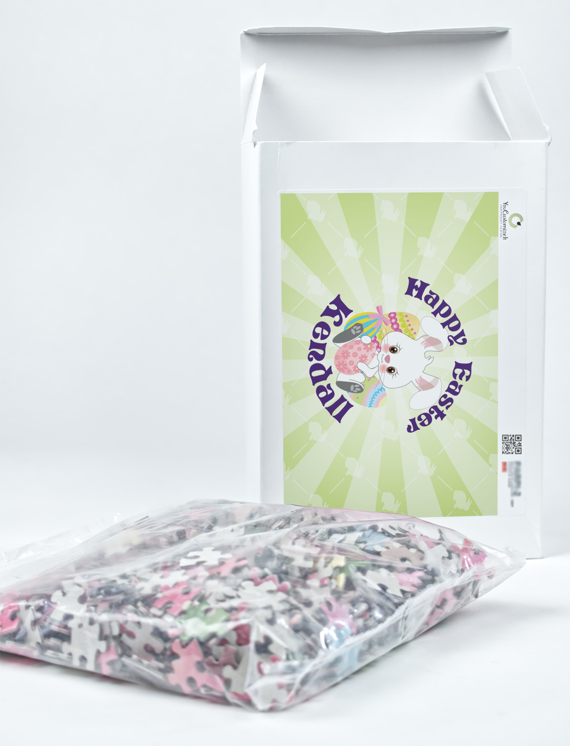 You can also upload your logo or art that you or your kids drew. To create more challenging jigsaw puzzles, you can create a pattern from with your logo or artwork. You can also add other elements such as text or personalization.