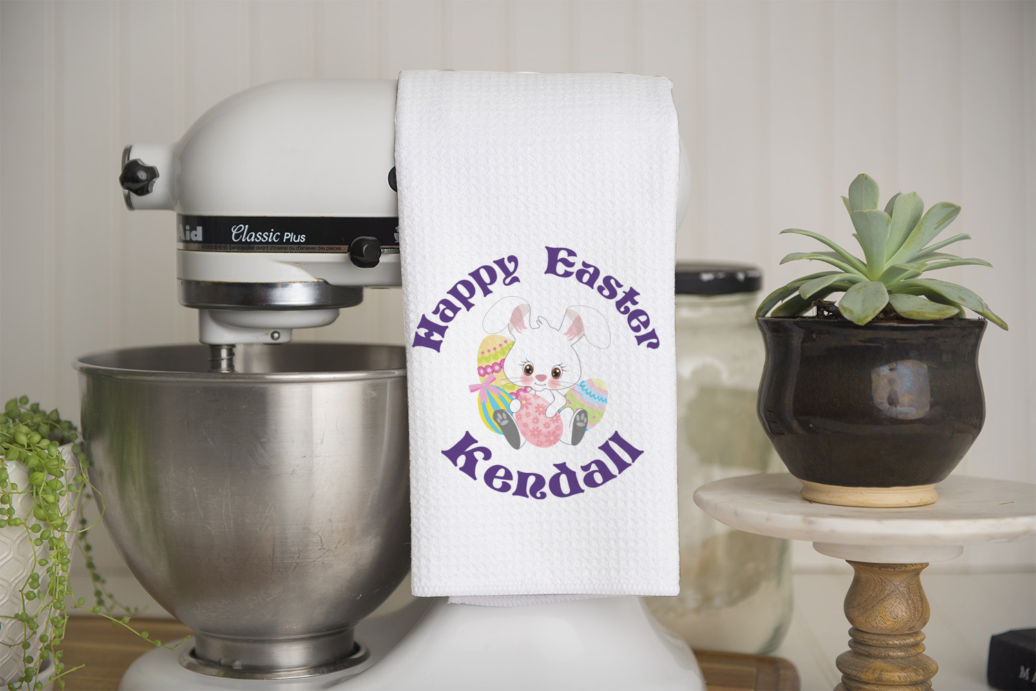 Easter Bunny Designs for Kitchen Towels - Waffle Weave - Partial Print