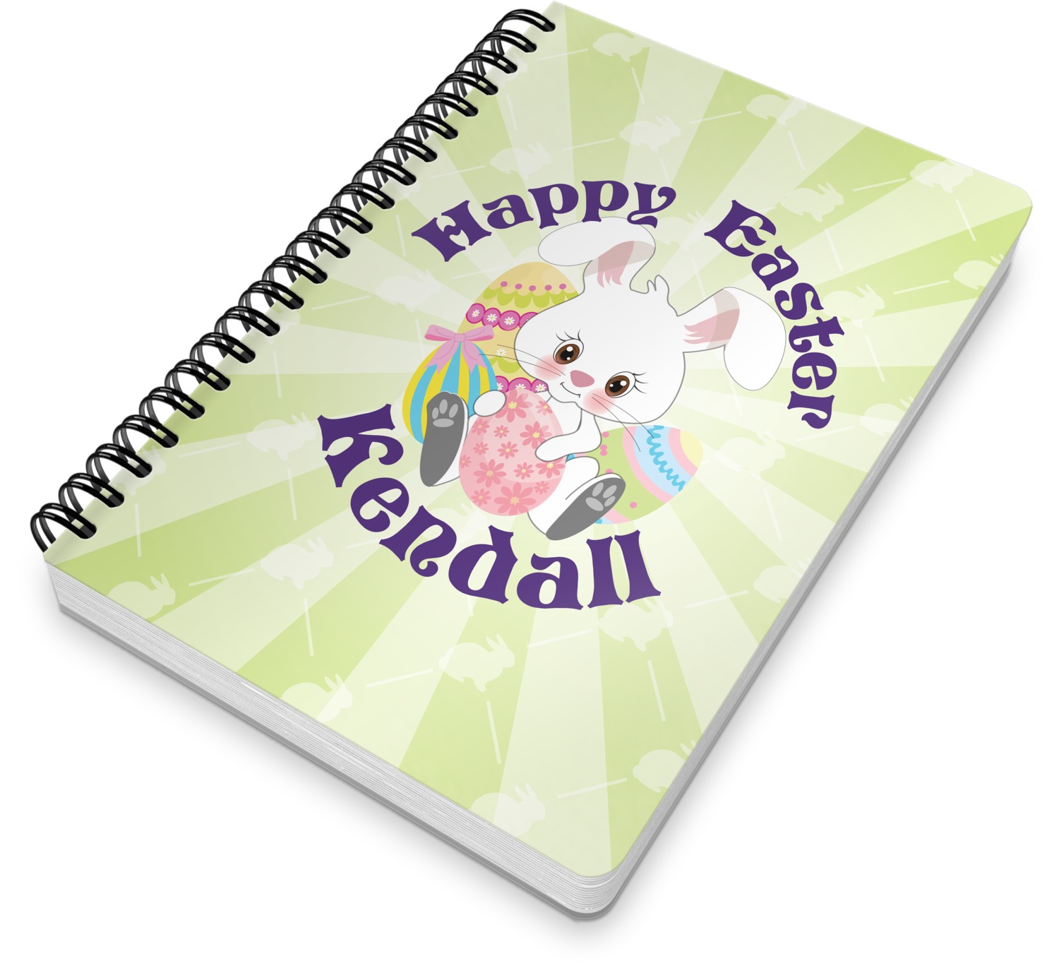 This spiral notebook includes 75 sheets of thick, ruled paper. The front and back of this custom notebook is made of a robust, laminate, plastic covering. We print your personalization on these two panels, underneath a glossy finish, which emphasizes the colors of your design. The two panels and the sheets of paper are held together by a sturdy, black coil. The paper within your bound notebook is perforated for easy, clean tearing.