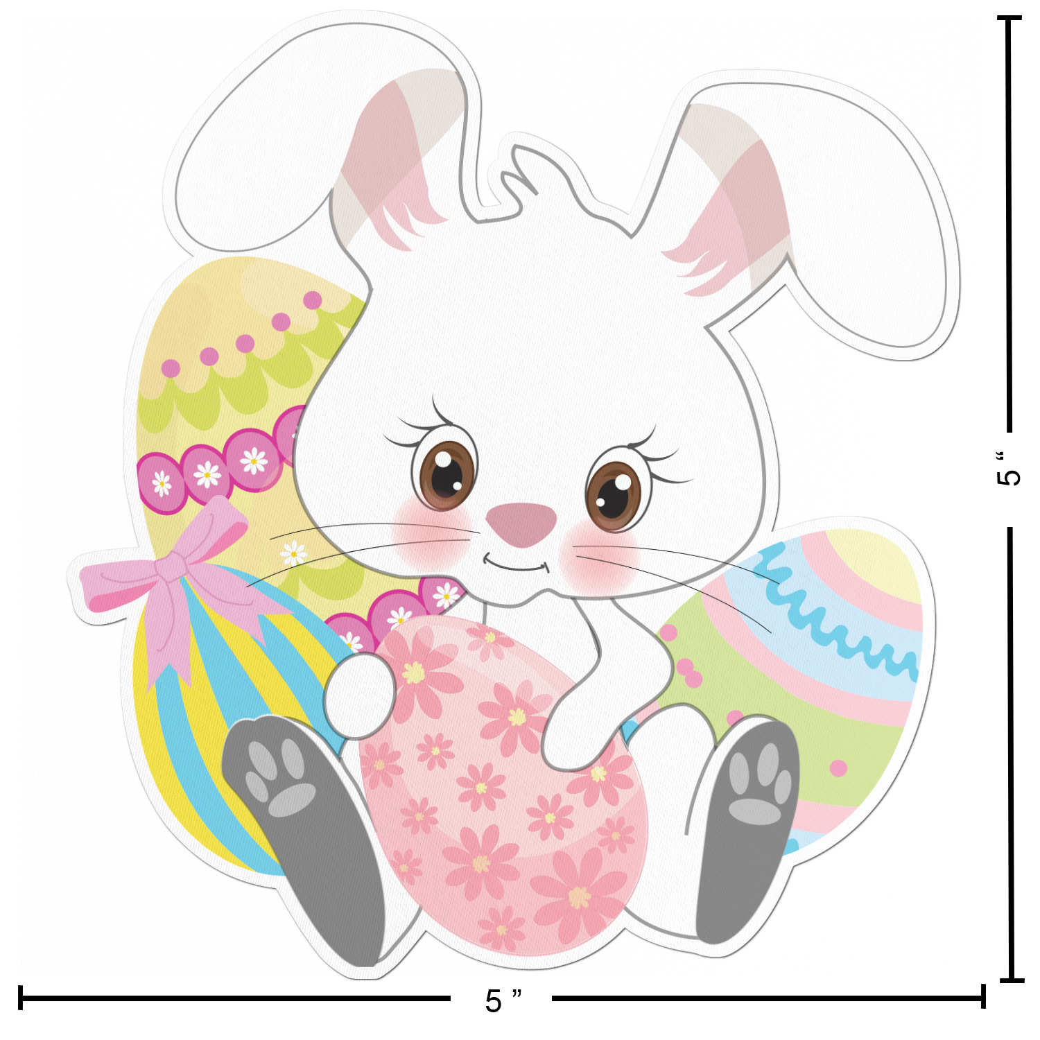 This Easter Bunny design is the prefect example of layered design to create a gorgeous look. We started with a simple Easter bunnies pattern and made it tone on tone. Then we layered it with a our starburst design to create that heroic look. We then used our adorable Easter Bunny with eggs as our hero. We topped off the design with our newest curved text above and below the Easter Bunny.