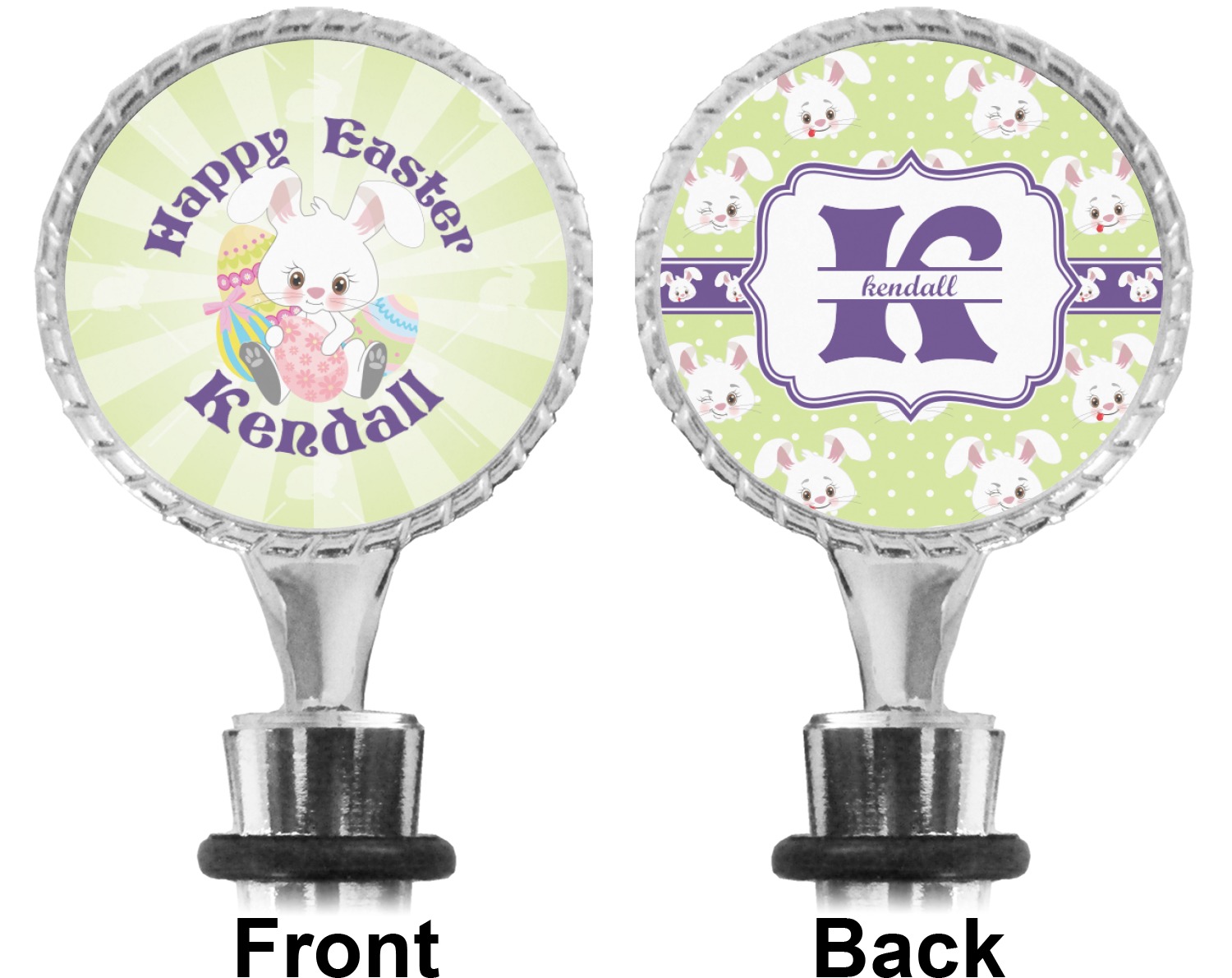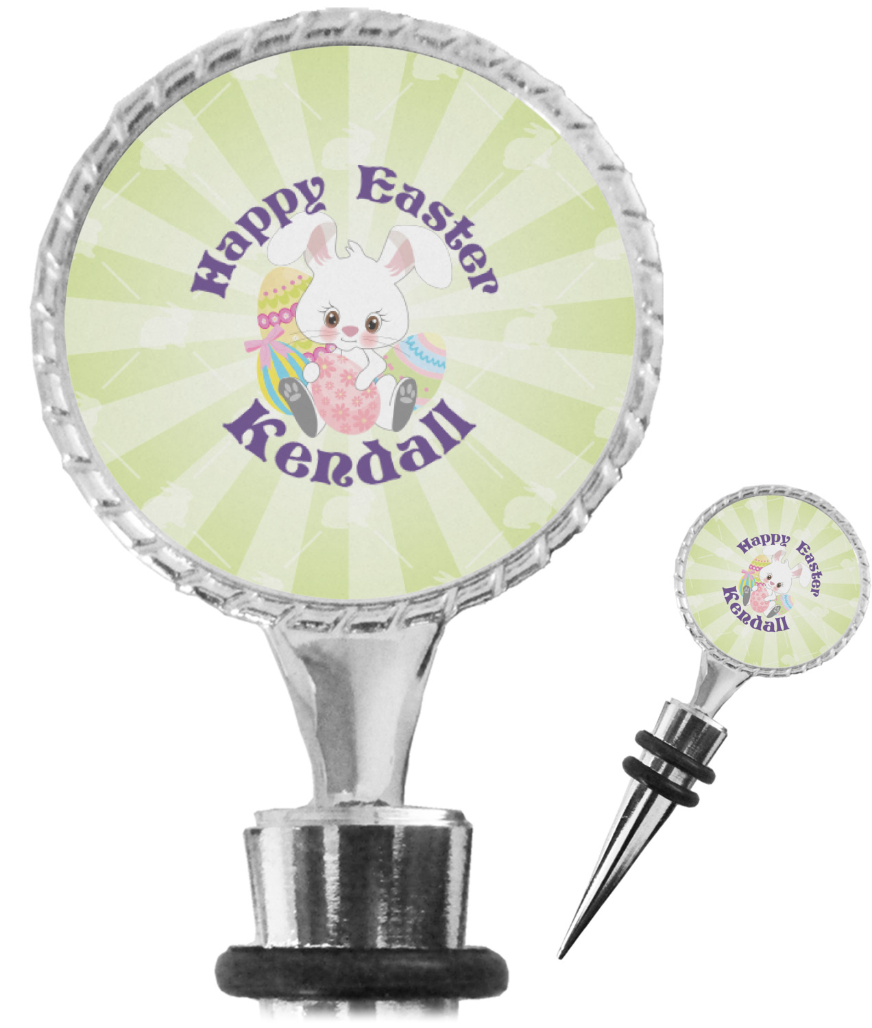 The top part of your bottle stopper is comprised of a zinc ring that displays your customization(s) in its middle, on both sides. The ring is heavy duty, with a bright chrome finish. The body of the wine stoppers have two silicone rings to provide an airtight seal. These wine bottle stoppers measure at 1.625" L x 0.8125" W x 4.625" H; your custom wine stopper is meant to fit into most standard-sized wine bottles.