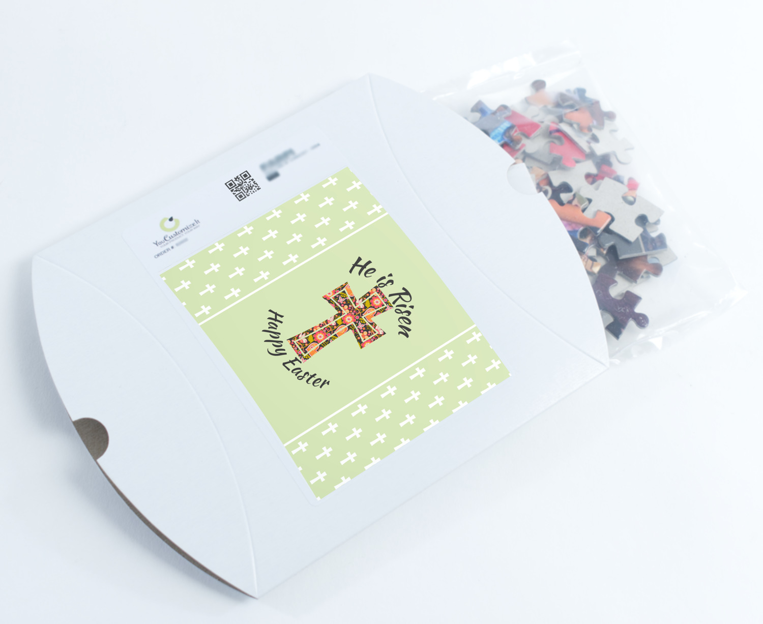 You can also upload your logo or art that you or your kids drew. To create more challenging jigsaw puzzles, you can create a pattern from with your logo or artwork. You can also add other elements such as text or personalization.