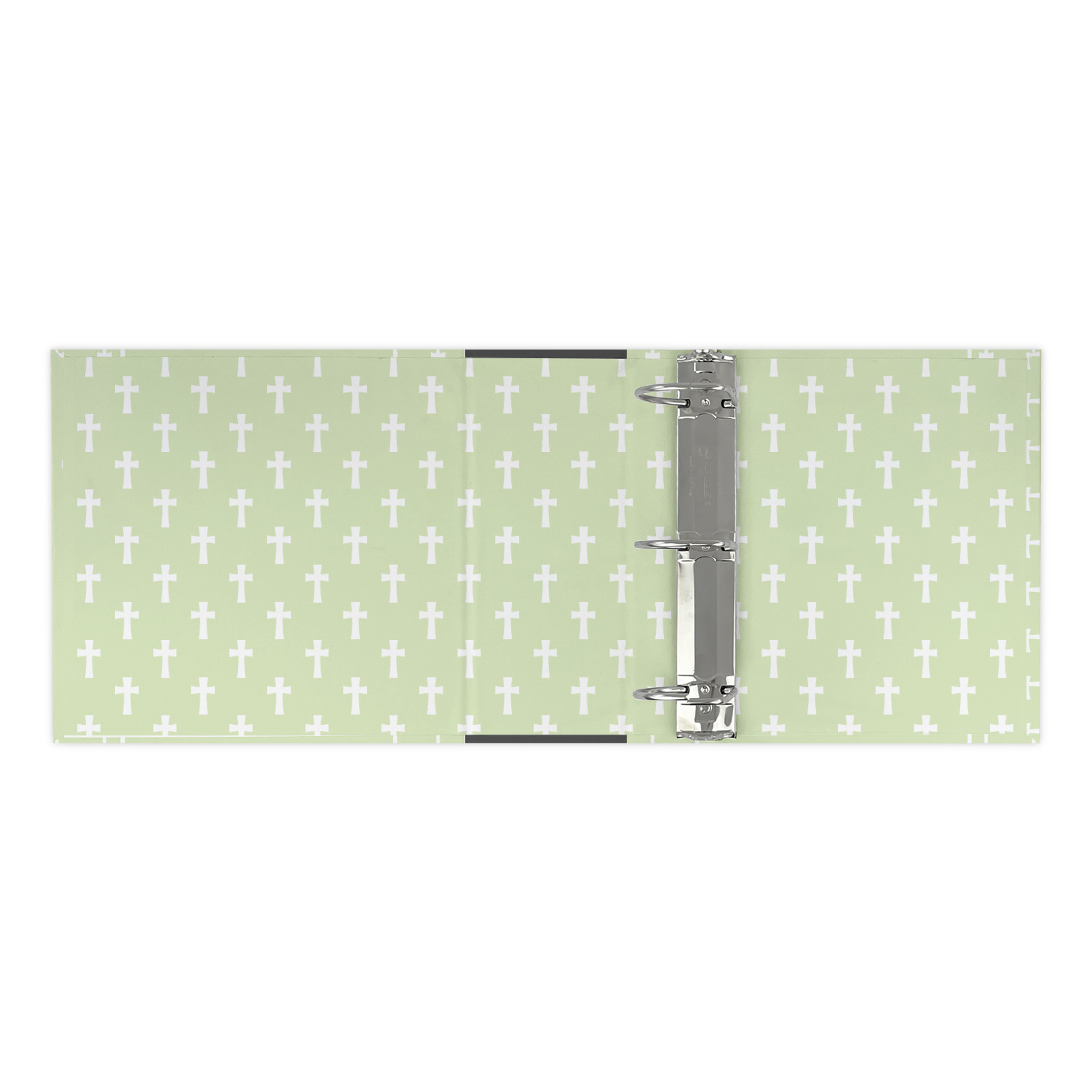 Made from a sturdy cardboard base with a full high quality canvas textured vinyl wrap with the design of your choice. Unlike our standard 3-ring binder with the full wrap design your artwork wraps from the front and back and into the inside of the binder.