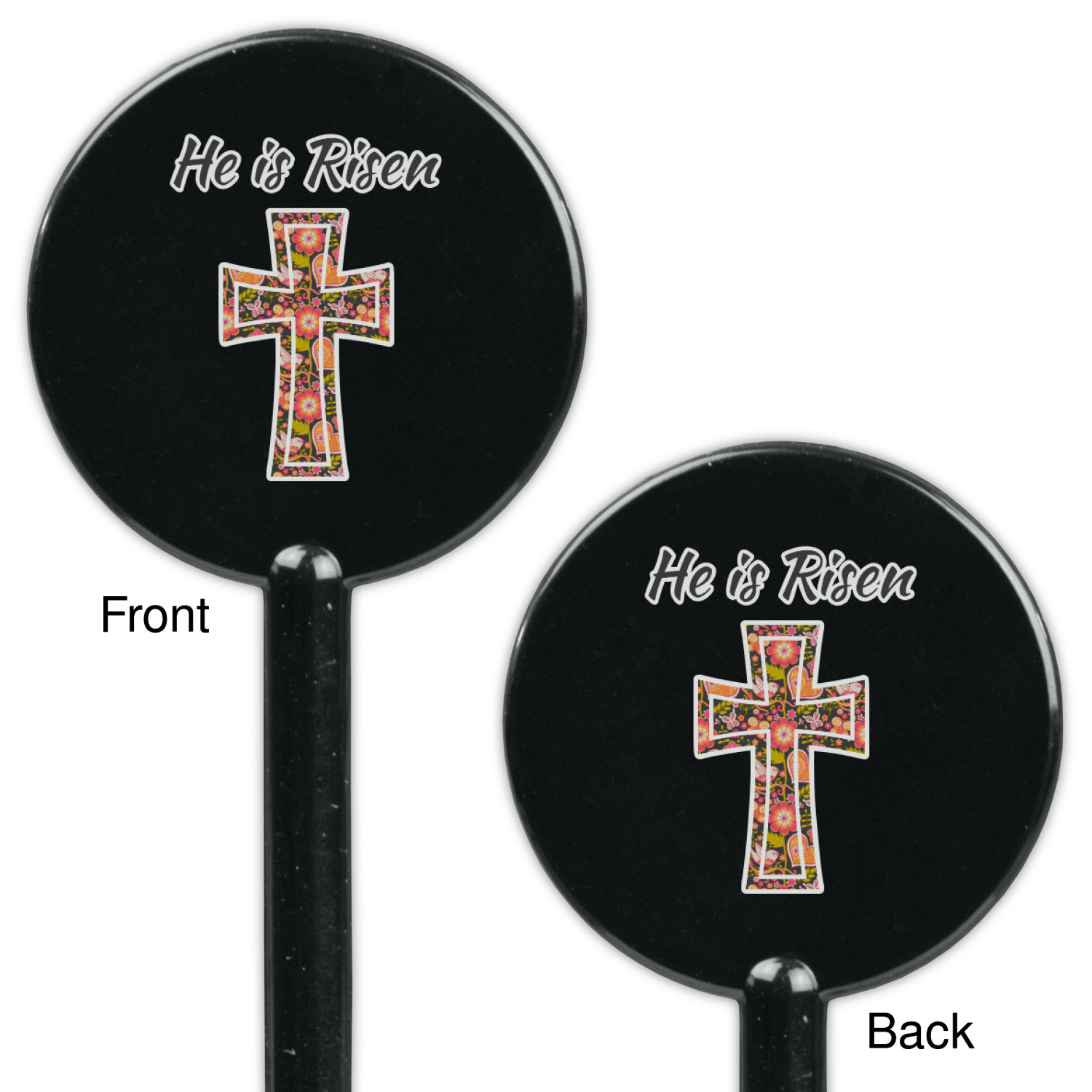 Shape + Symbol Designs for 5.5" Round Plastic Stir Sticks - Black - Double-Sided