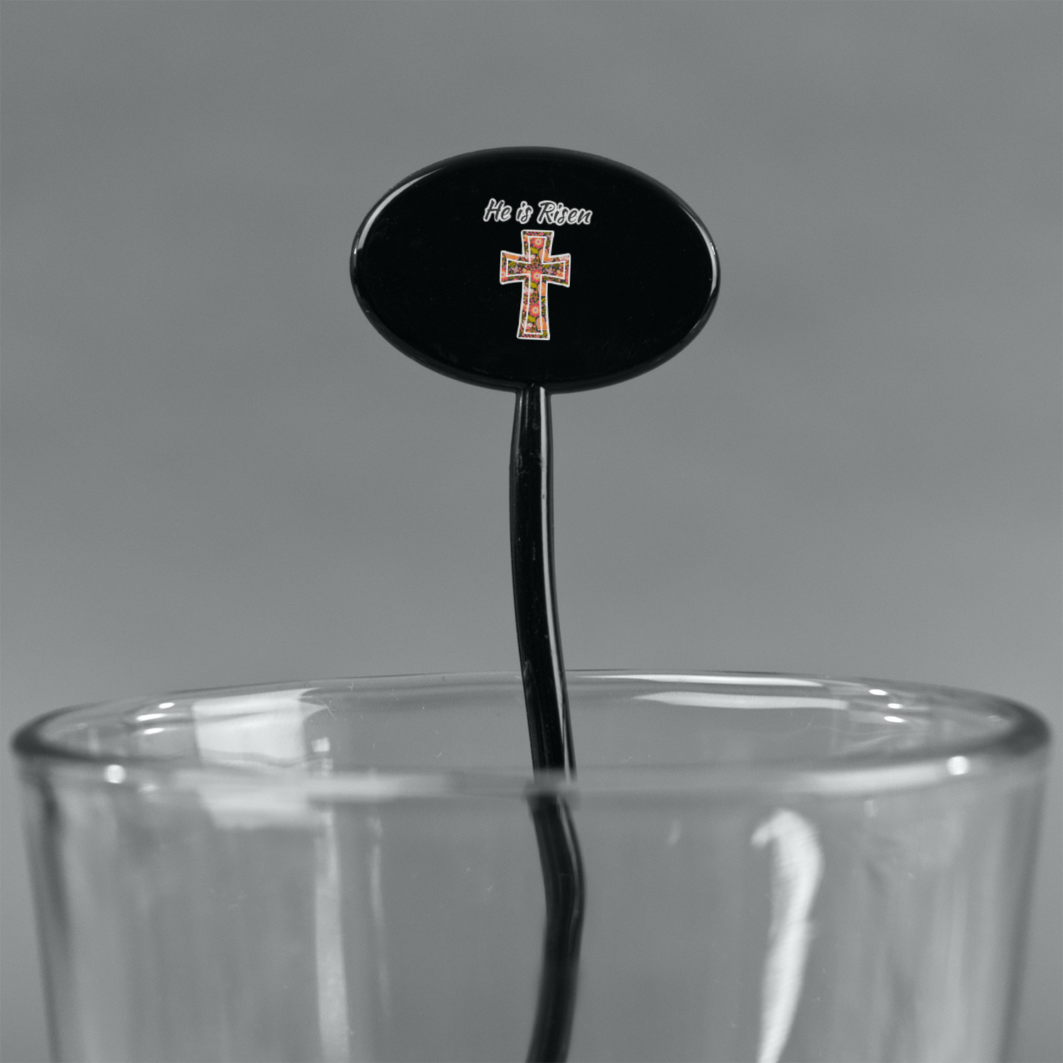 Shape + Symbol Designs for 7" Oval Plastic Stir Sticks - Black - Single-Sided