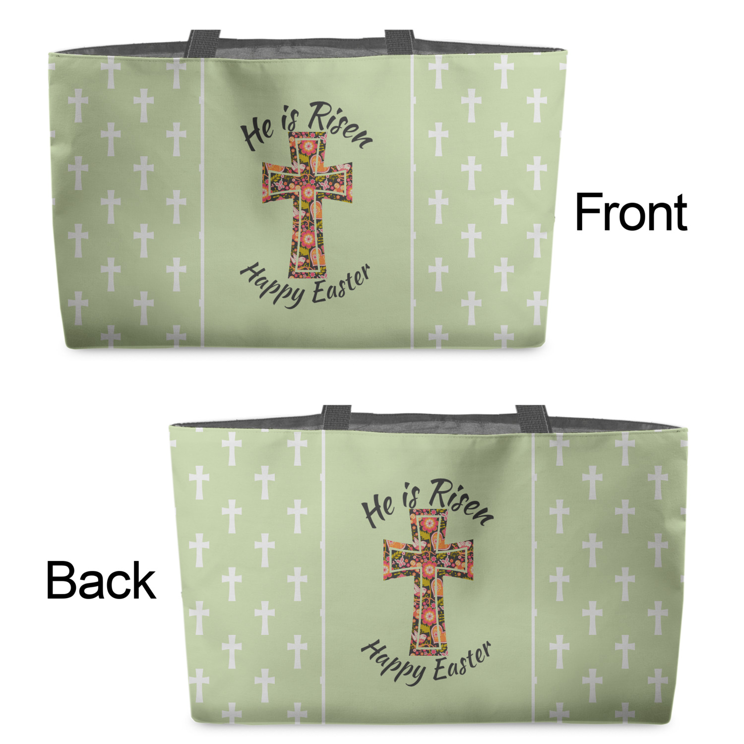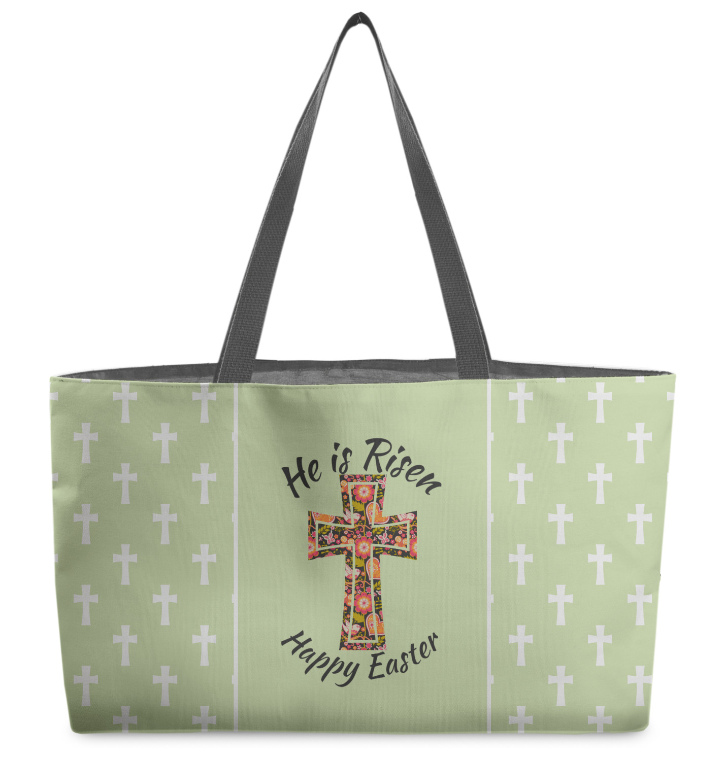 These beach totes are handmade here in the USA. Fabric is printed with your design. The tote is then sewn from the fabric pieces, lining and handles added.