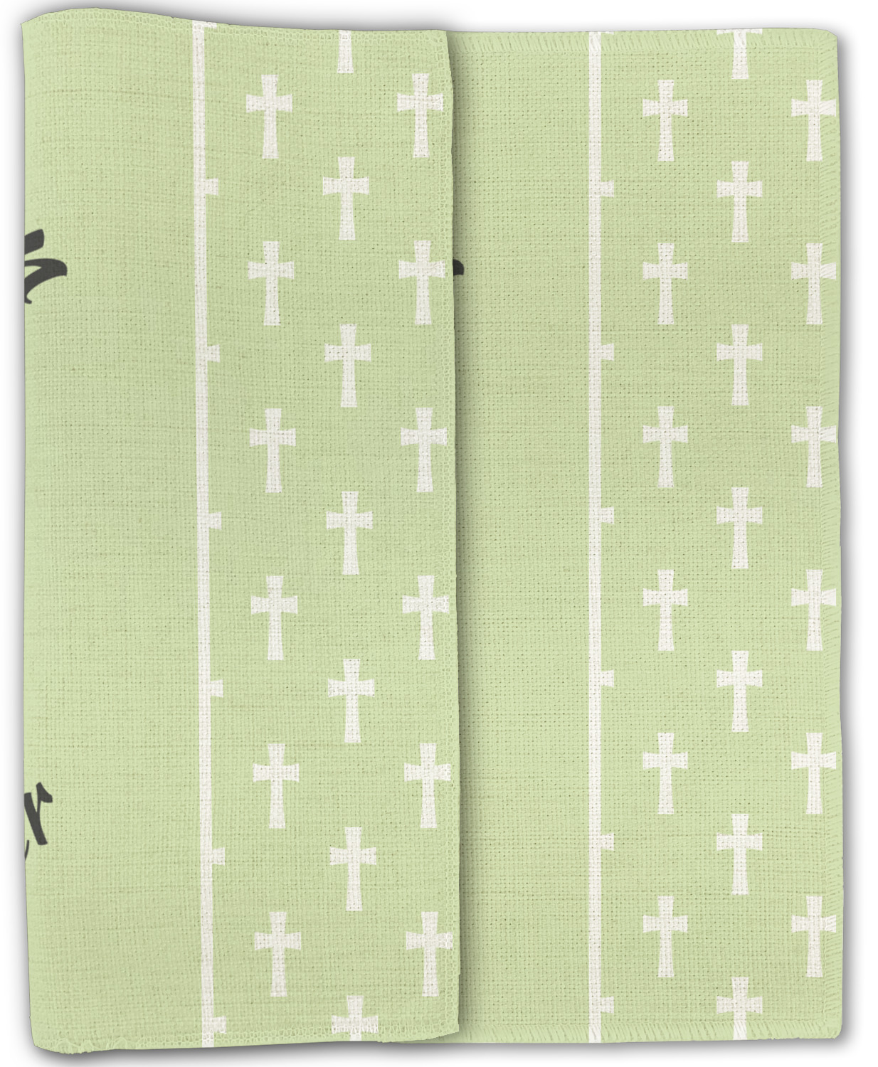 This Easter design celebrates the resurrection of Jesus Christ. For our background, we chose to use the vertically split background where the sides are a simple tone on tone pattern of crosses. The middle is a solid color. We chose a light green to represent spring. We chose our arched text and graphic style for the foreground. For the graphic, we chose a simple cross that is filled with floral pattern of birds and hearts. For our text we used "He is Risen" on top and "Happy Easter" on the bottom.