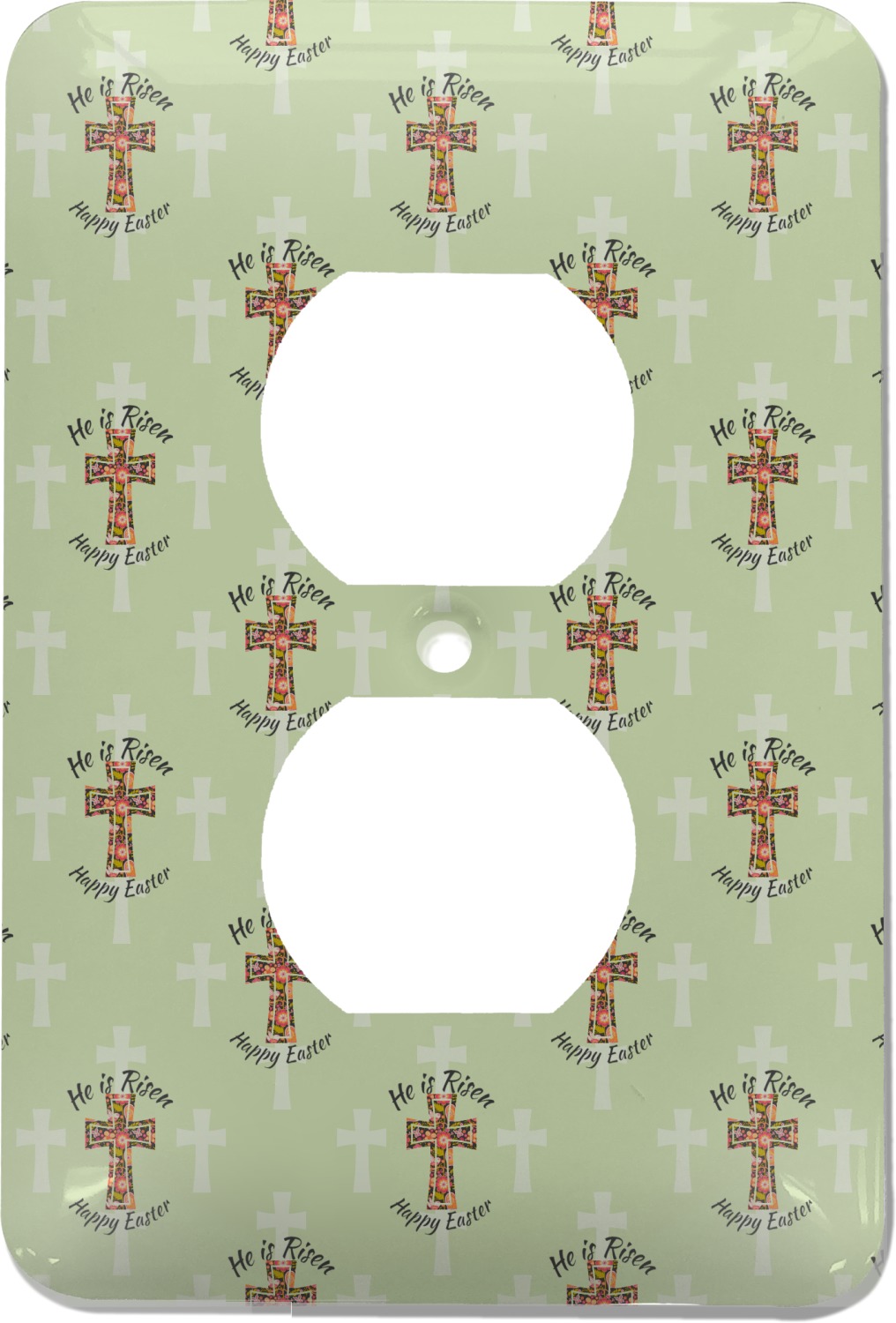 These outlet covers are made from a sturdy metal and display your design across its face. A satin finish coats the design to give it a finished look. The center of this outlet plate cover has a small hole to accommodate a screw upon installation. With your purchase of this decorative outlet cover, we include one screw. This outlet plate is of a standard size, and measures at approximately 3.5 by 5 inches.