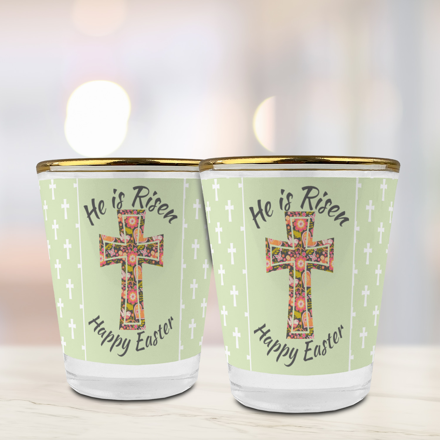 Made with frosted glass, these shot glasses are printed in full color with the design of your choice. They are a standard 1.5oz shot glass and are 2.4" tall. The print is wrapped around the shot glass in a full wrap and boldly displays your customization.