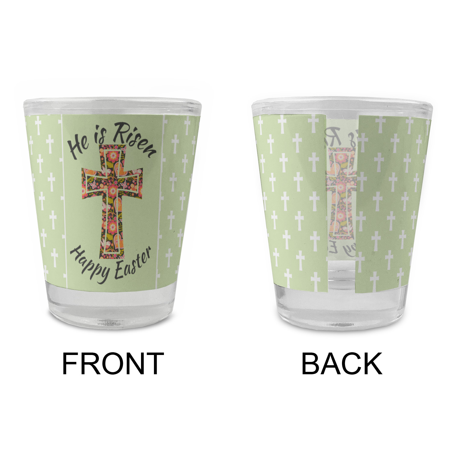 Made with frosted glass, these shot glasses are printed in full color with the design of your choice. They are a standard 1.5oz shot glass and are 2.4" tall. The print is wrapped around the shot glass in a full wrap and boldly displays your customization.
