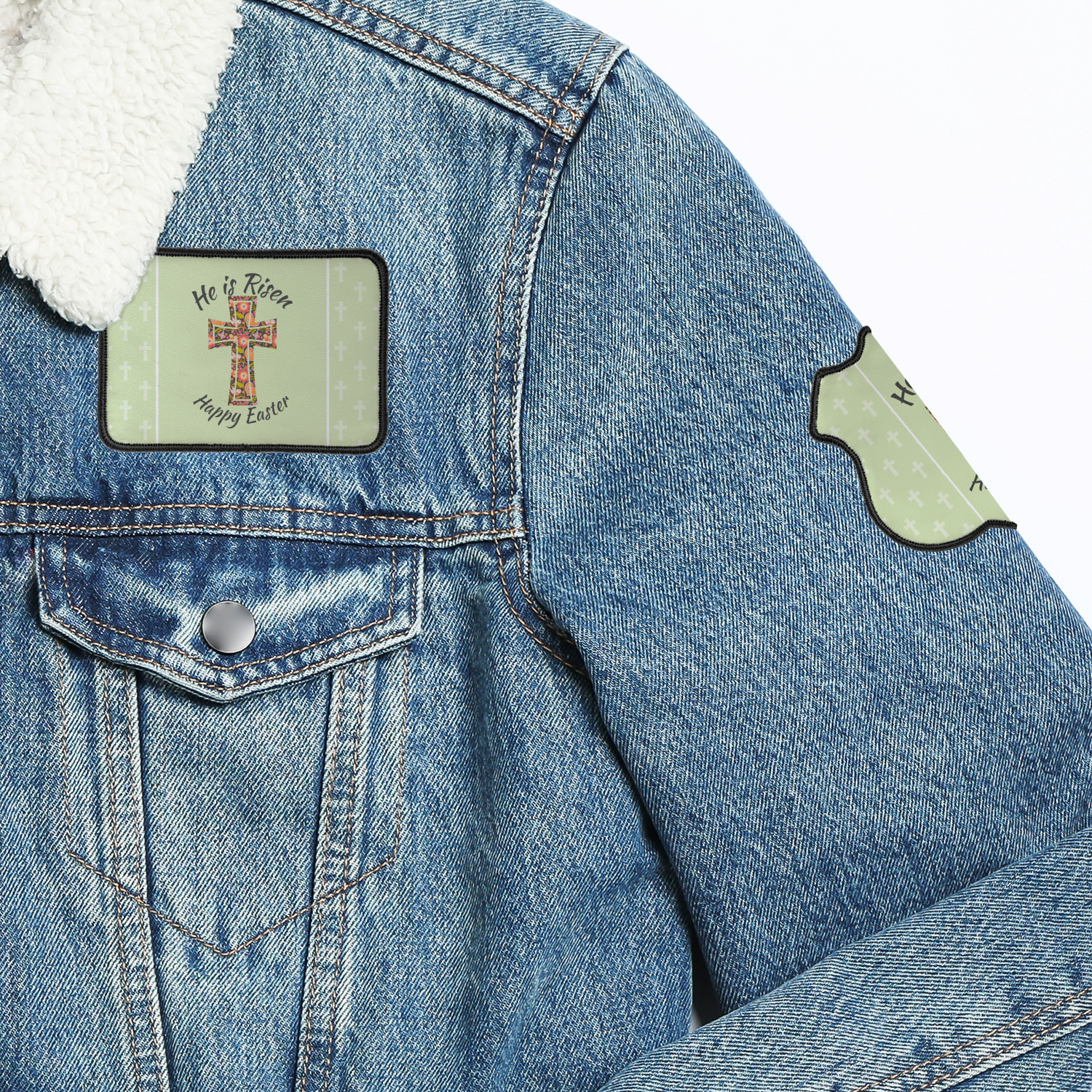 The patches are made to be ironed on with a heat press, your home iron, or they can also be sewn on. To iron on the patch, remove the paper backing, place on garment and iron on at 300 degrees (wool setting on the home iron) and press for 15 seconds from front side on a heat press and back side on a home iron.