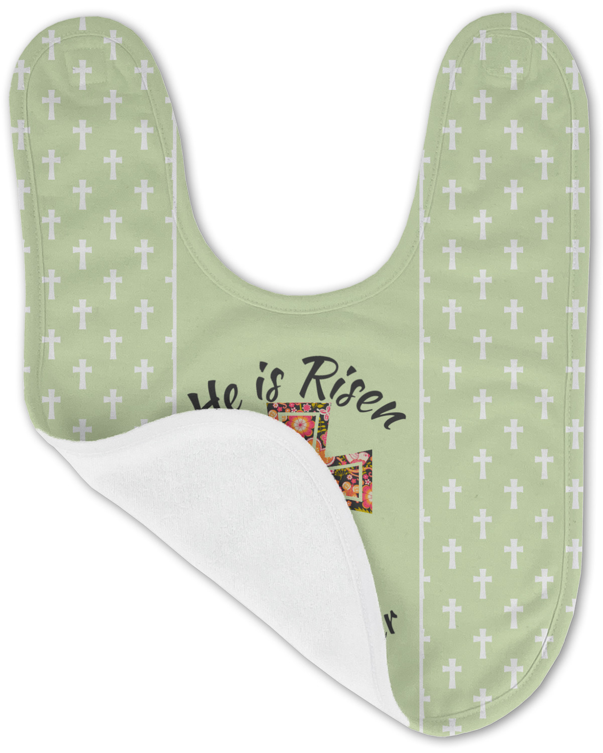 Made of soft polyester, each customizable bib hugs comfortably around the neck to catch every drip and drool. Each bib design is printed with baby-safe ink and finished with a secure stitch pattern and velcro clasp. We carry two customizable bib styles -Microfiber Velour and Jersey Knit.