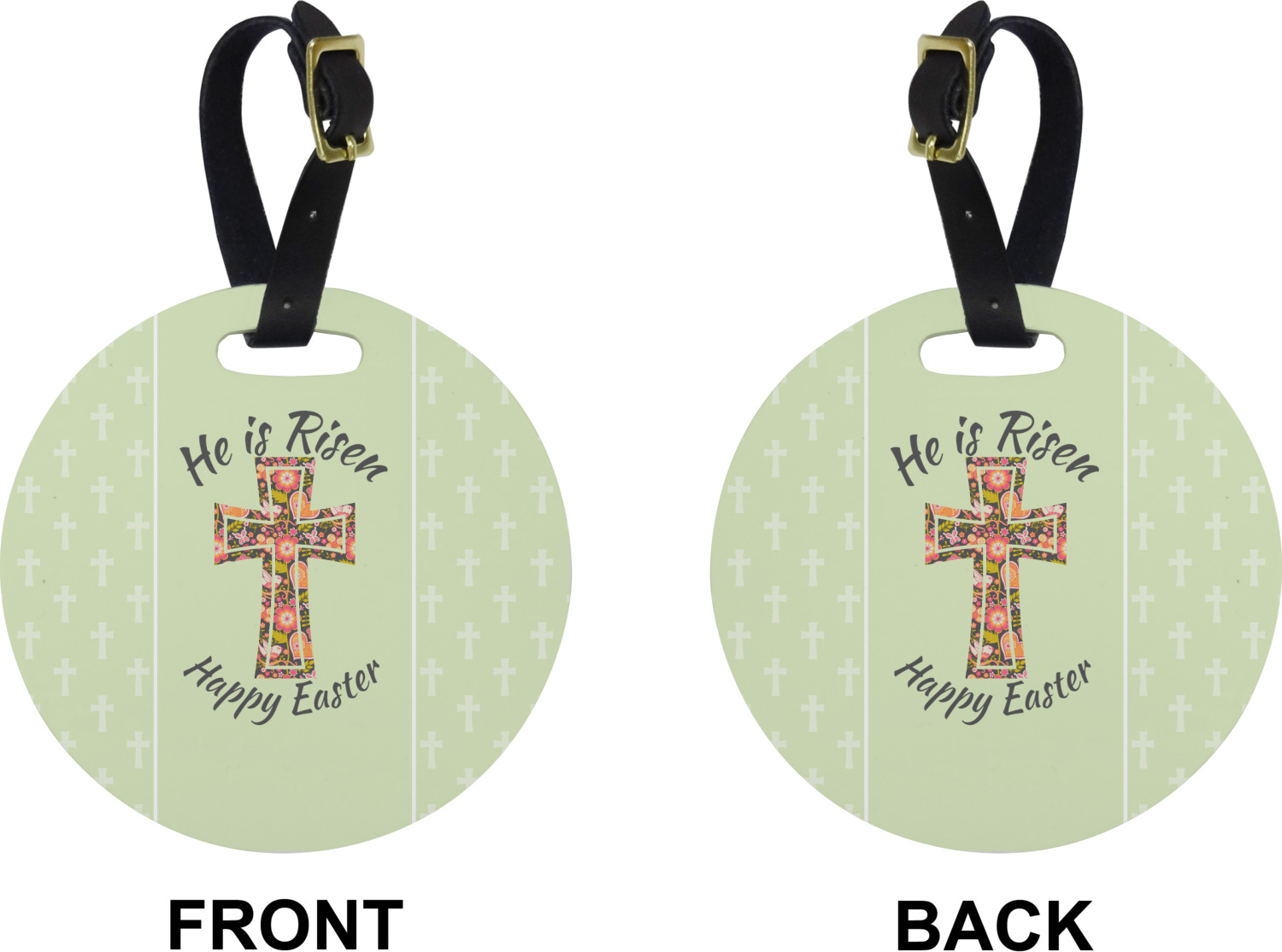 These personalized bag tags are sold in a variety of shapes, so that you may find the product that meets your vision exactly. We sell a round luggage tag, which measures at approximately 4" x 4". Our square luggage tag is about 3.5" x 3.5", while our rectangular version is 2.75" x 4 ".