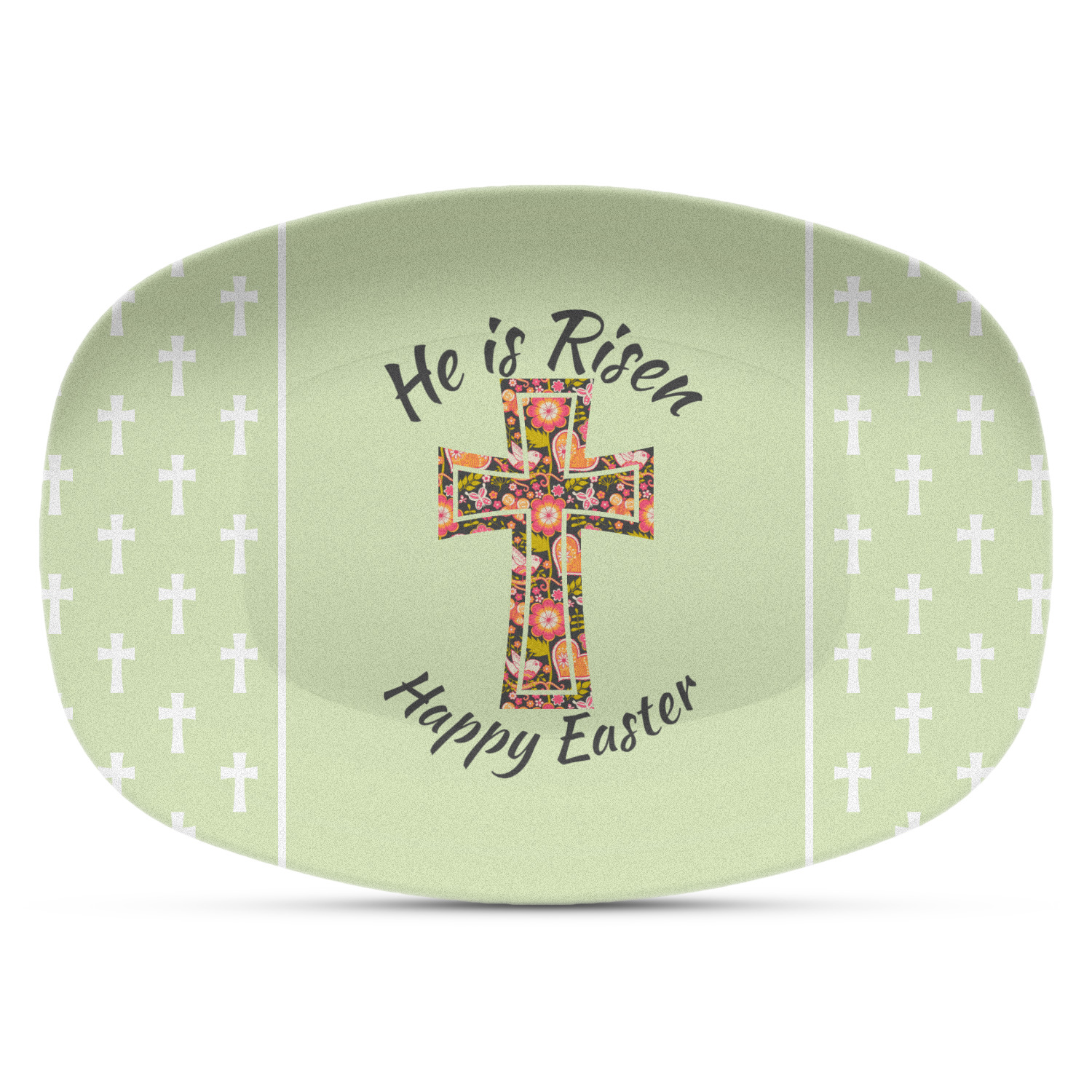 These serving platters are made from a composite, thermo-set, polymer plastic that gives it the versatility, durability, and weight of a melamine platter, without any of the downsides of melamine. These personalized platters, can withstand temperatures up to 250 degrees Fahrenheit, for up to 60 minutes. No harmful chemicals, such as BPA, formaldehyde, and DEHPs were used in the manufacturing of this product. This large serving platter measures at 14" x 10.25", and is spacious enough to hold any of your appetizers or bite-sized desserts. The platter exhibits your personalization across the entirety of its front.