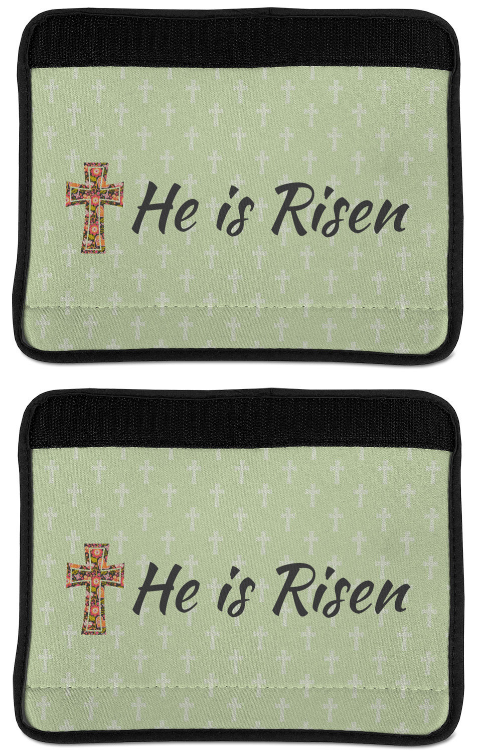 Made from neoprene, our seat belt strap covers wrap around the belt itself and have a Velcro tab for easy attachment and closure. The belt's edges are trimmed with a black polyester for a secure finish. Each cover is 9.5 by 7 inches when open and 9.5 by 2.5 inches when closed. We print your personalized design on the face of the seat belt pad.