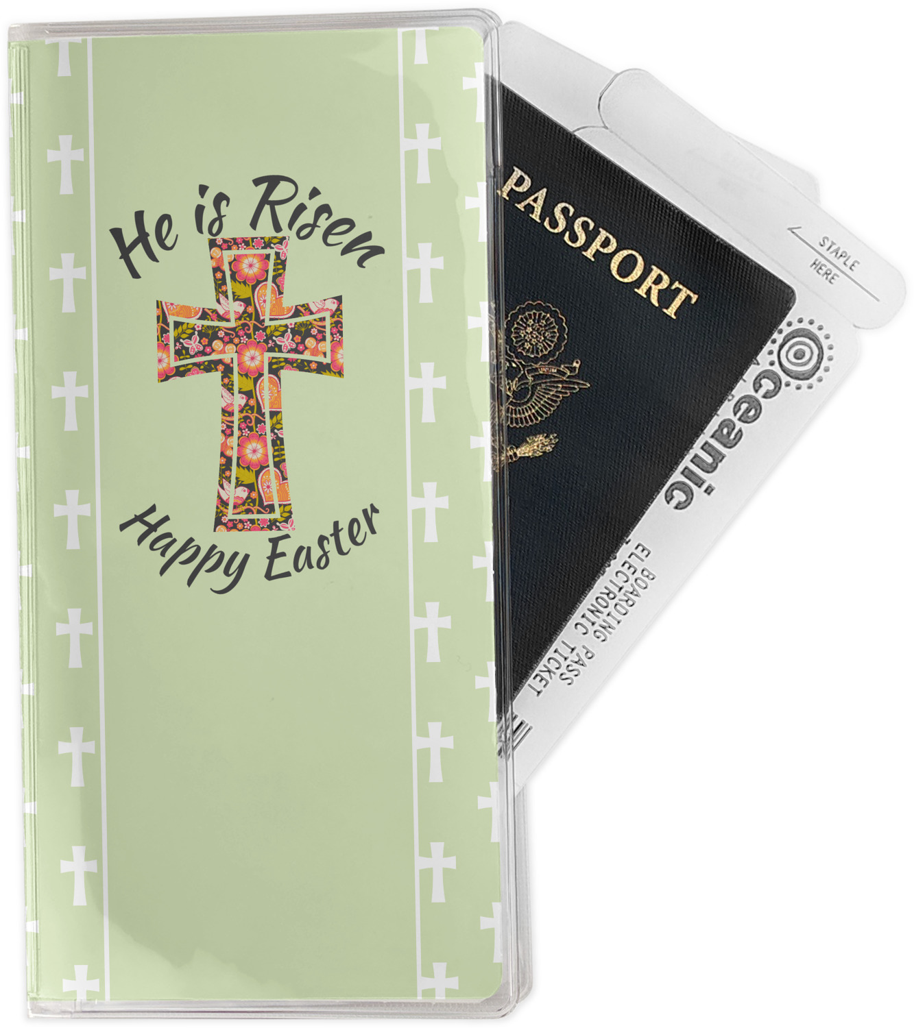 This document holder is really sturdy and has your personalized design inserted right behind all of your nifty pockets, so you can see it on the front and back covers. There are two large pockets and two shorter pockets inside. The larger pockets are tall enough to keep your boarding pass nice and straight. The smaller pockets (on top of the large pockets) are large enough to fit your passport, credit card, or ID.