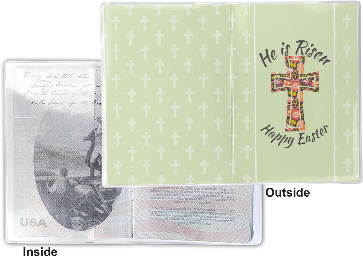 This cover is made of a sturdy clear vinyl with a personalized vinyl insert inside. There is a large and a small pocket on either side to hold the covers of your passport easily and firmly. The passport holder is approximately 7.5" x 5.25", the perfect size to snugly fit your passport. This slim cover is the perfect way to protect your passport without being one more bulky item you have to carry.