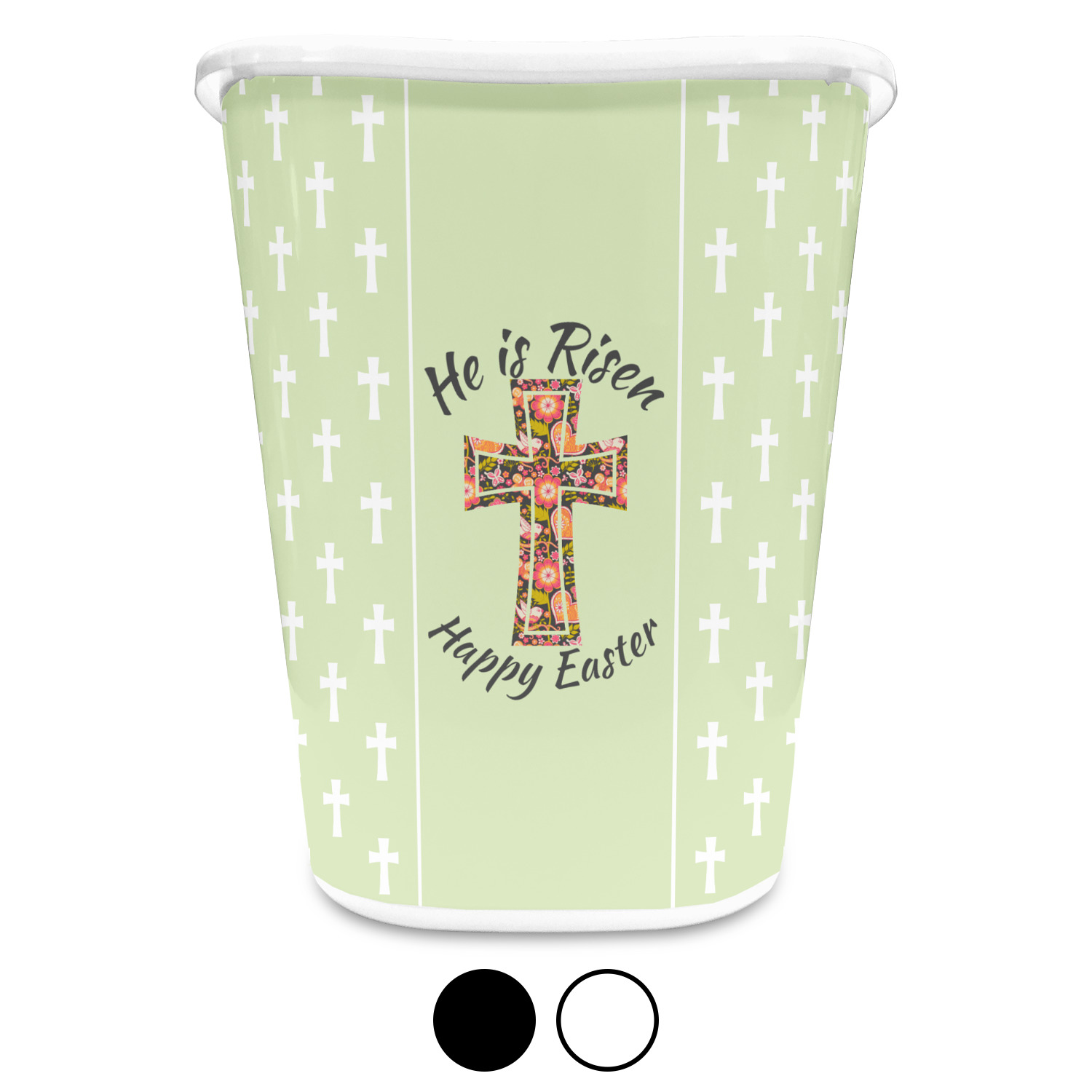 You can choose to purchase these decorative wastebaskets in either a white or a black color that will show on the base and the upper rim. Your customization is printed on a high-gloss, fine-quality vinyl adhesive, and you can choose to either have this adhesive applied to one side only or to both sides. As such, this plastic wastebasket can be single-sided or double-sided, depending on your creative vision. Your customization is printed using durable inks, making the design waterproof and resistant to fading over time.