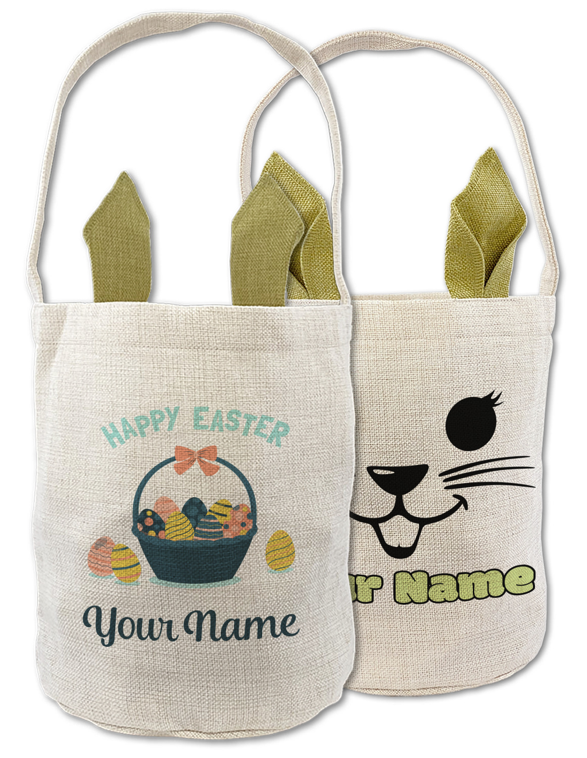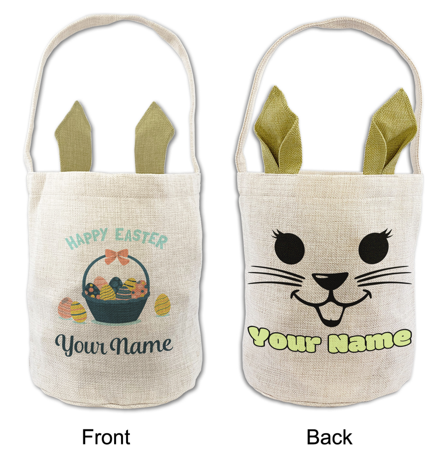Our baskets comes with two cute bunny ears and customizable bunny faces with your name easily added to the design. You also have the option of adding another image or photo to the other side of the basket for even more color and design options.