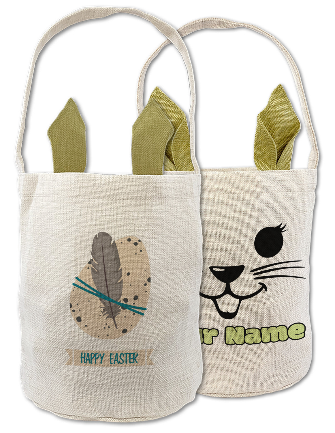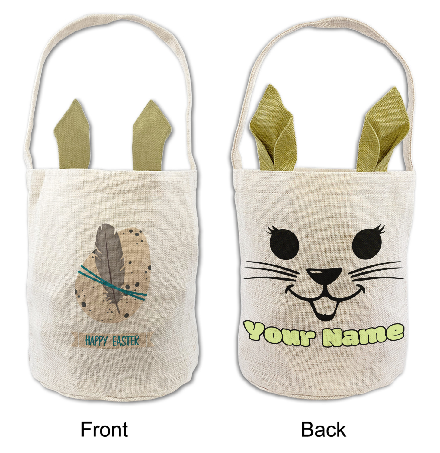 Our baskets comes with two cute bunny ears and customizable bunny faces with your name easily added to the design. You also have the option of adding another image or photo to the other side of the basket for even more color and design options.