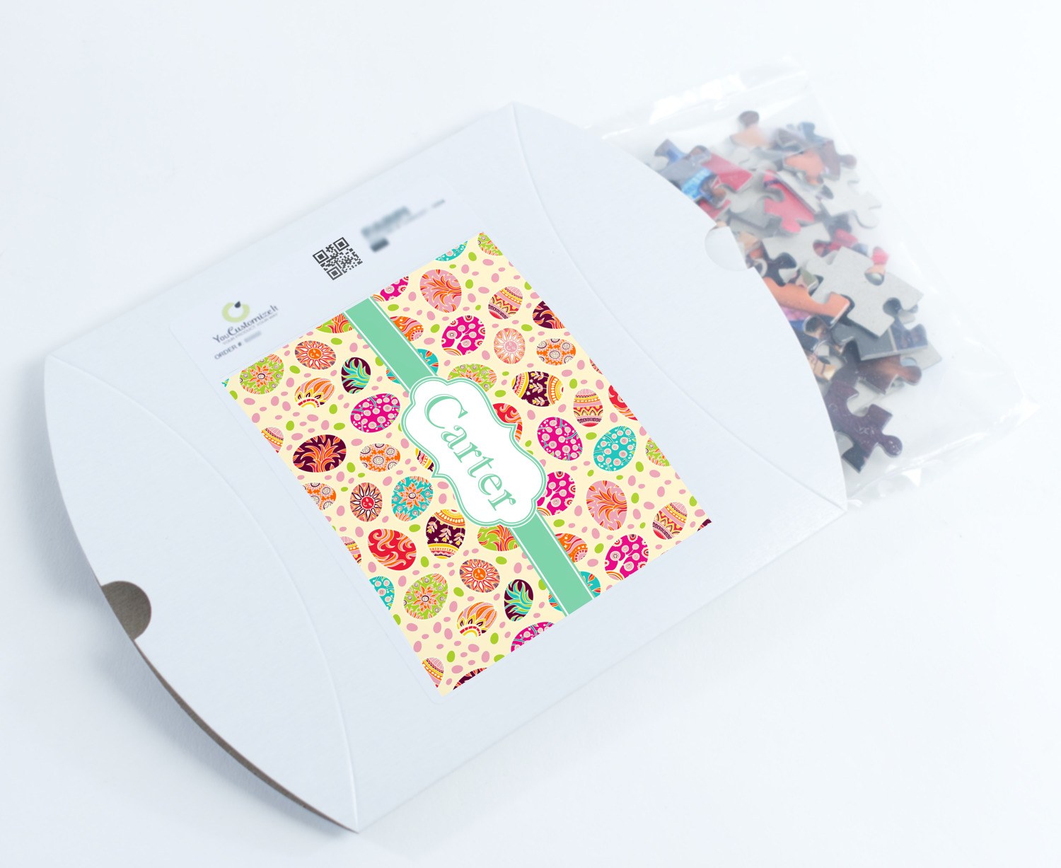 You can also upload your logo or art that you or your kids drew. To create more challenging jigsaw puzzles, you can create a pattern from with your logo or artwork. You can also add other elements such as text or personalization.