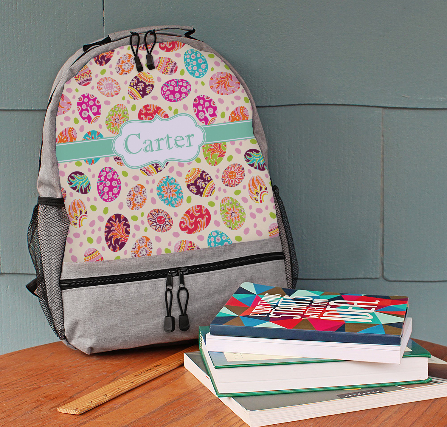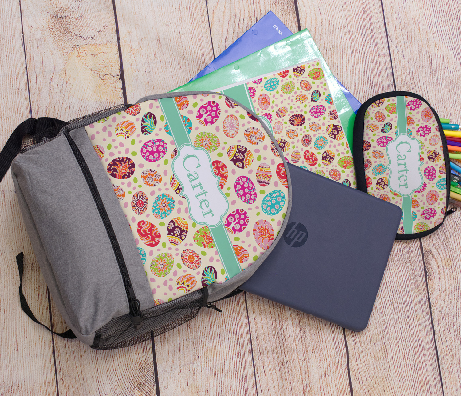 Celebrate Easter with this graphic and whimsical design! Featured in the design are multicolored, patterned Easter eggs and pink and green jelly beans on a cream background.