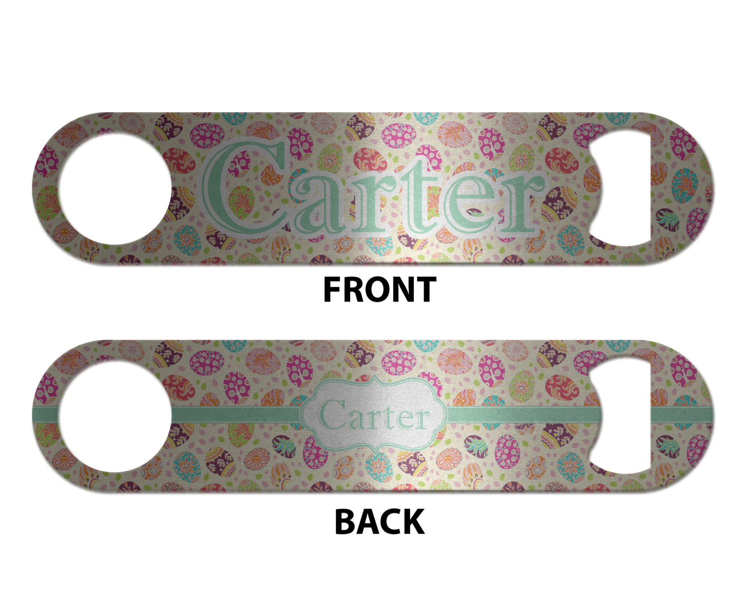 Made from stainless steel, these beer bottle openers are 7 by 1.625 inches, giving you plenty of leverage when trying to open a stubborn bottle. On one end of this personalized bottle opener, you'll find a circular hole for you to hang and display your opener. On the opposite end, you'll find the tool used for opening bottles. This opener in particular has the same structure and style as professional bartender bottle openers. Your customization is sublimated onto both the back and front, and both sides can be customized individually. Choose from one of our two base colors - white or silver.
