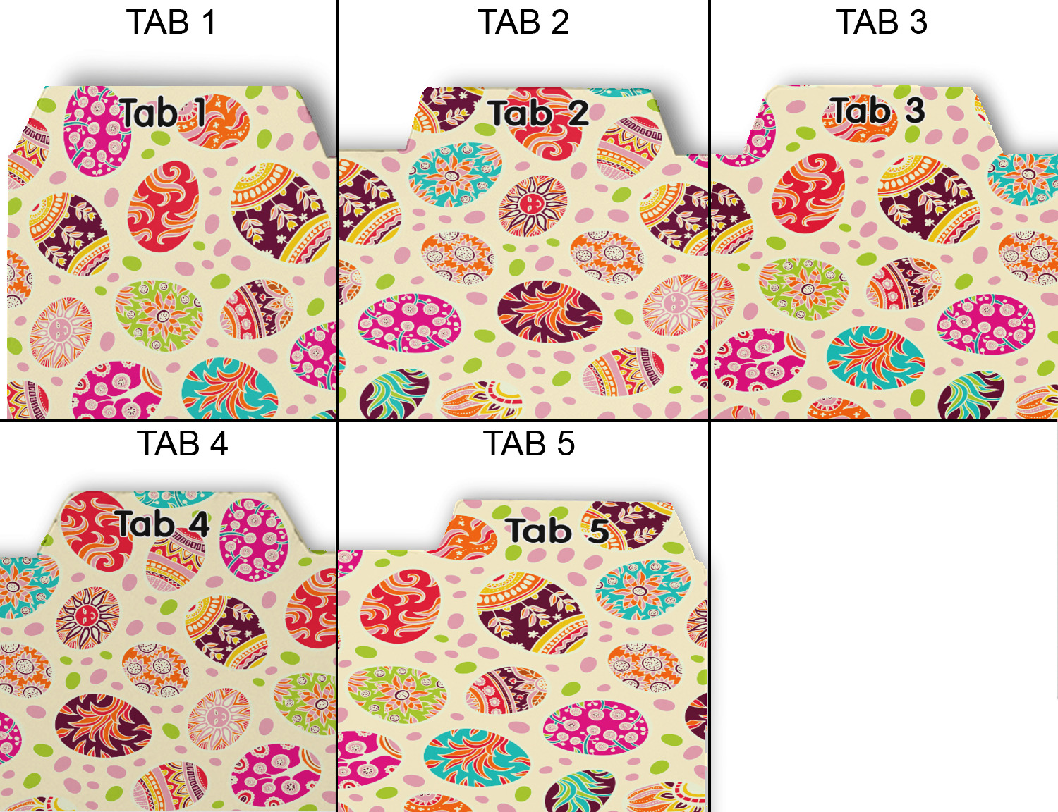 Whether you use binders at school or at work, we have designs to suit all of them. Available in 5 or 6 tab sets, you are sure to find a set to suit your needs. The back of each one is white and can be used to take notes, write vital information on, etc.
