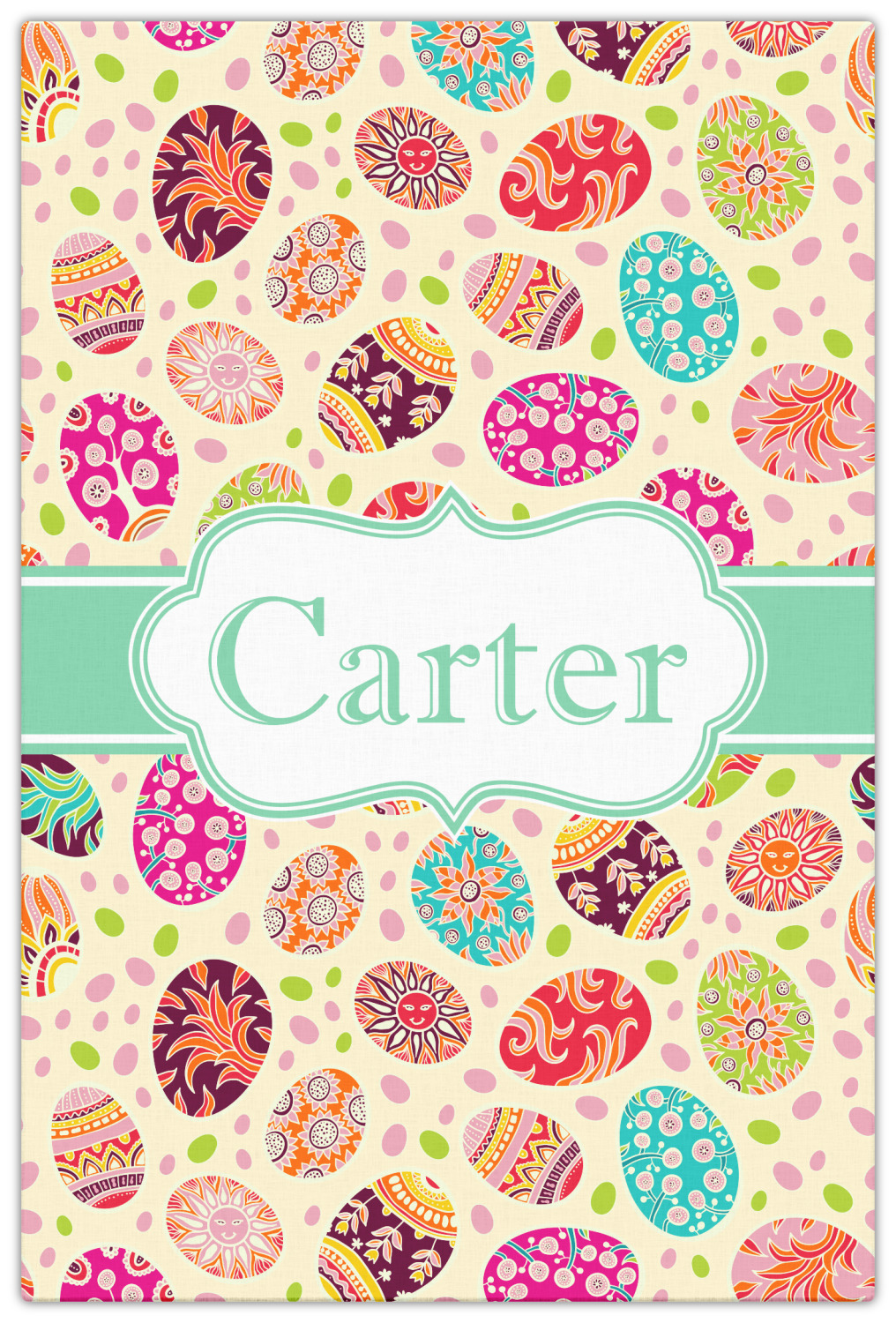 Celebrate Easter with this graphic and whimsical design! Featured in the design are multicolored, patterned Easter eggs and pink and green jelly beans on a cream background.