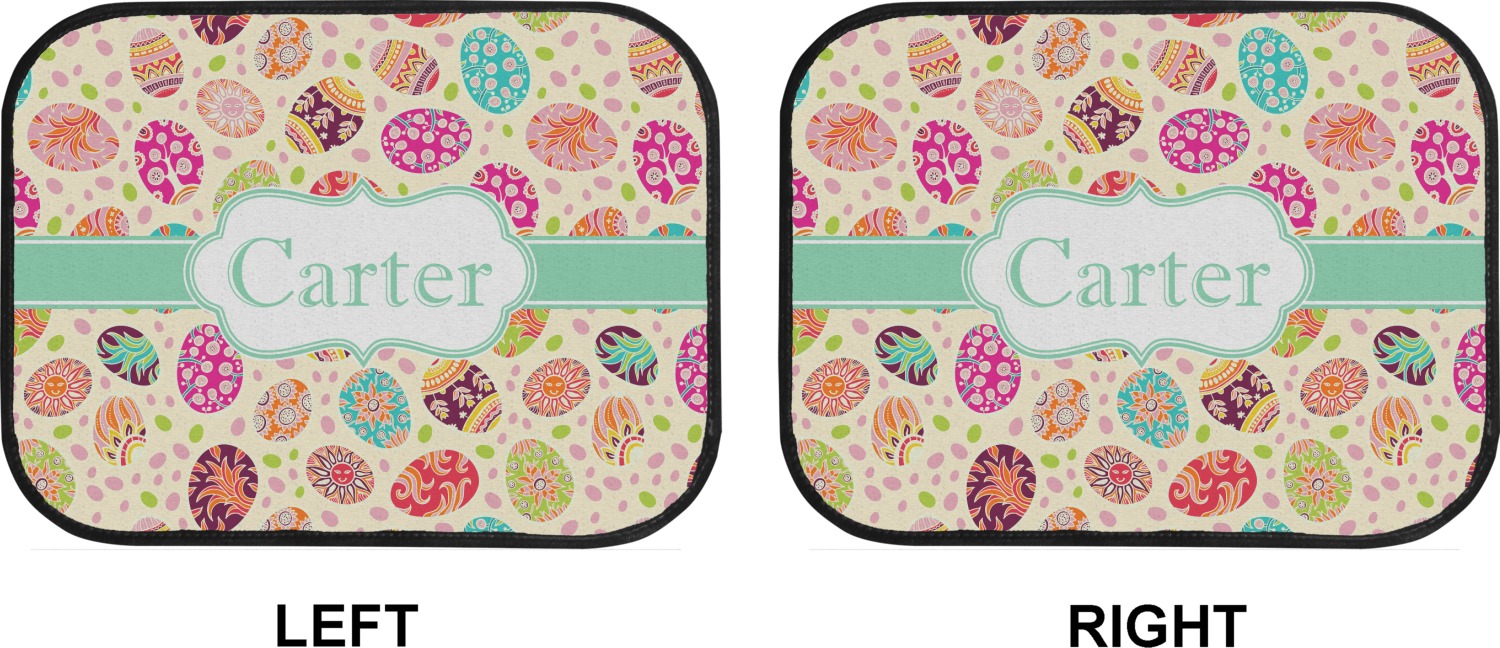 We craft our auto floor mats mats from polyester, apply a black finish to the edges, and lined at the bottom to prevent slippage. These mats protect your floors from grass, mud, and any accidental spills. We display your personalized design on the front face of each mat. The sizes of these car floor liners are standardized to provide a versatile fit for all vehicles. The front rows car mats measure at 17 by 26.5 inches, while the back rows measure at 17 by 13 inches. We sell three packages of car floor mats. You can purchase a pair of front row car mats, a pair of back row car mats, or a set of front row and back row car mats. To make an informed purchase, we recommend measuring the surface area of your car floors.