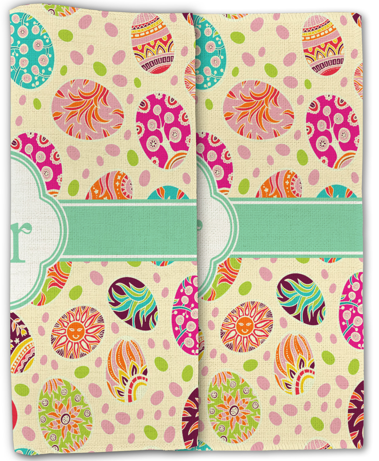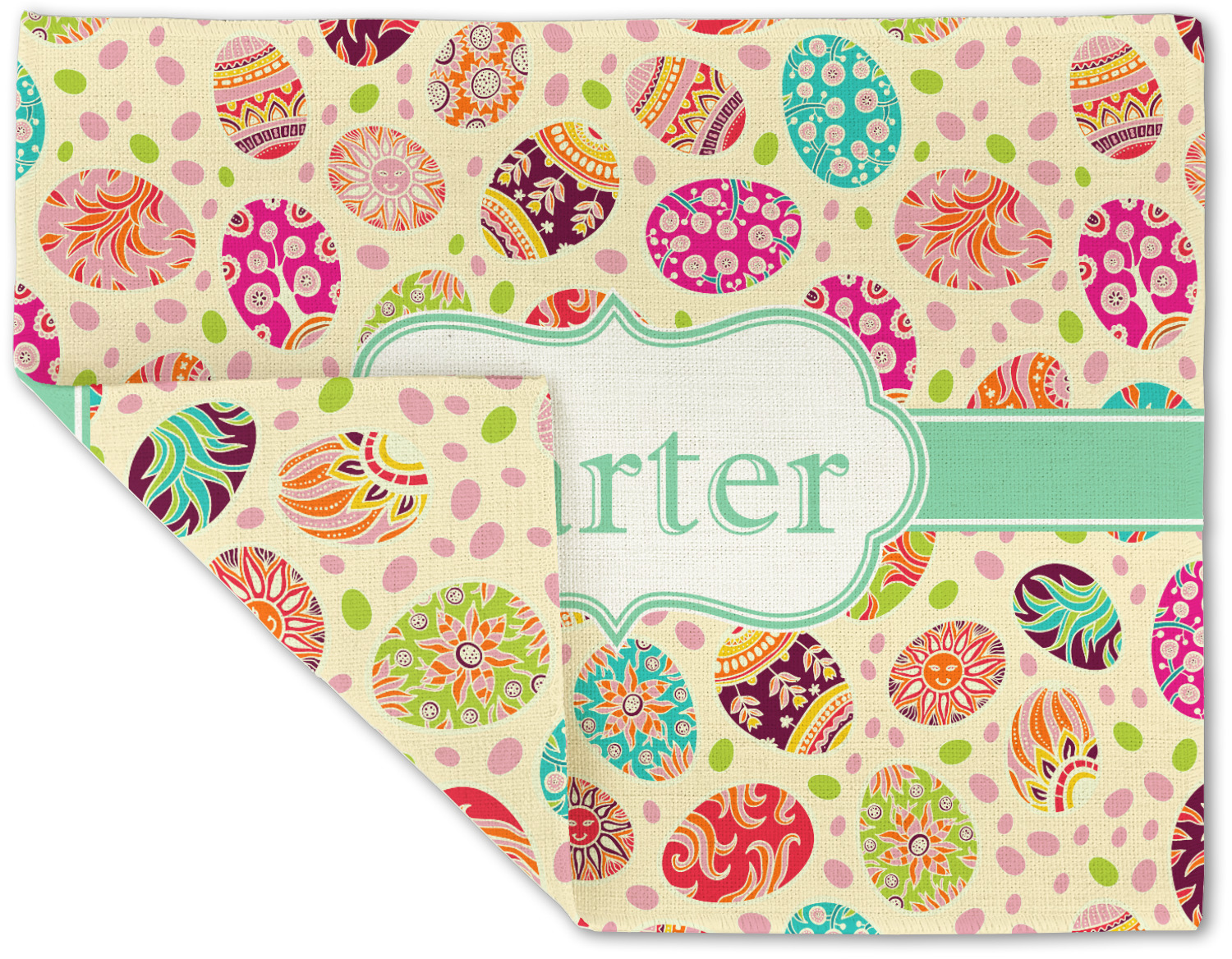 Celebrate Easter with this graphic and whimsical design! Featured in the design are multicolored, patterned Easter eggs and pink and green jelly beans on a cream background.