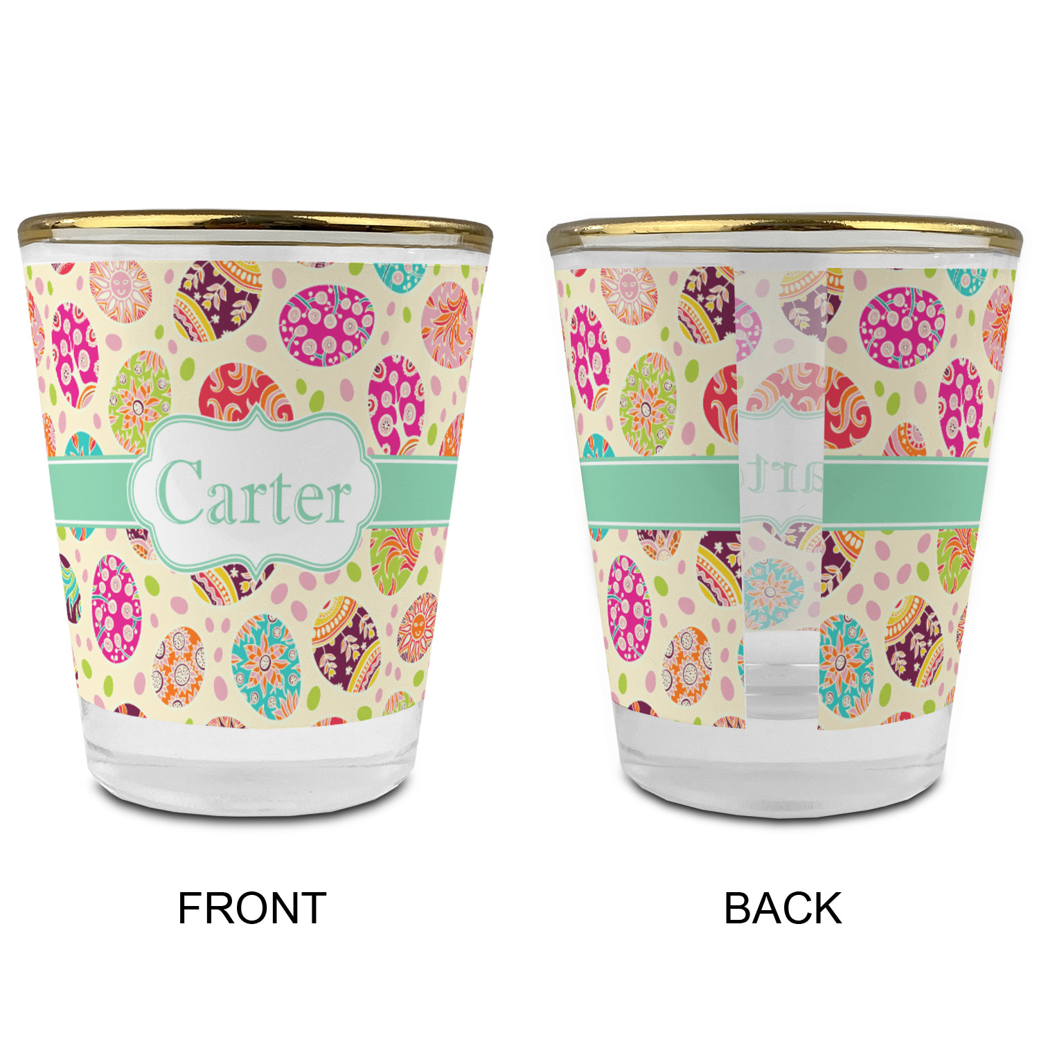 Made with frosted glass, these shot glasses are printed in full color with the design of your choice. They are a standard 1.5oz shot glass and are 2.4" tall. The print is wrapped around the shot glass in a full wrap and boldly displays your customization.